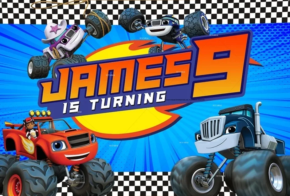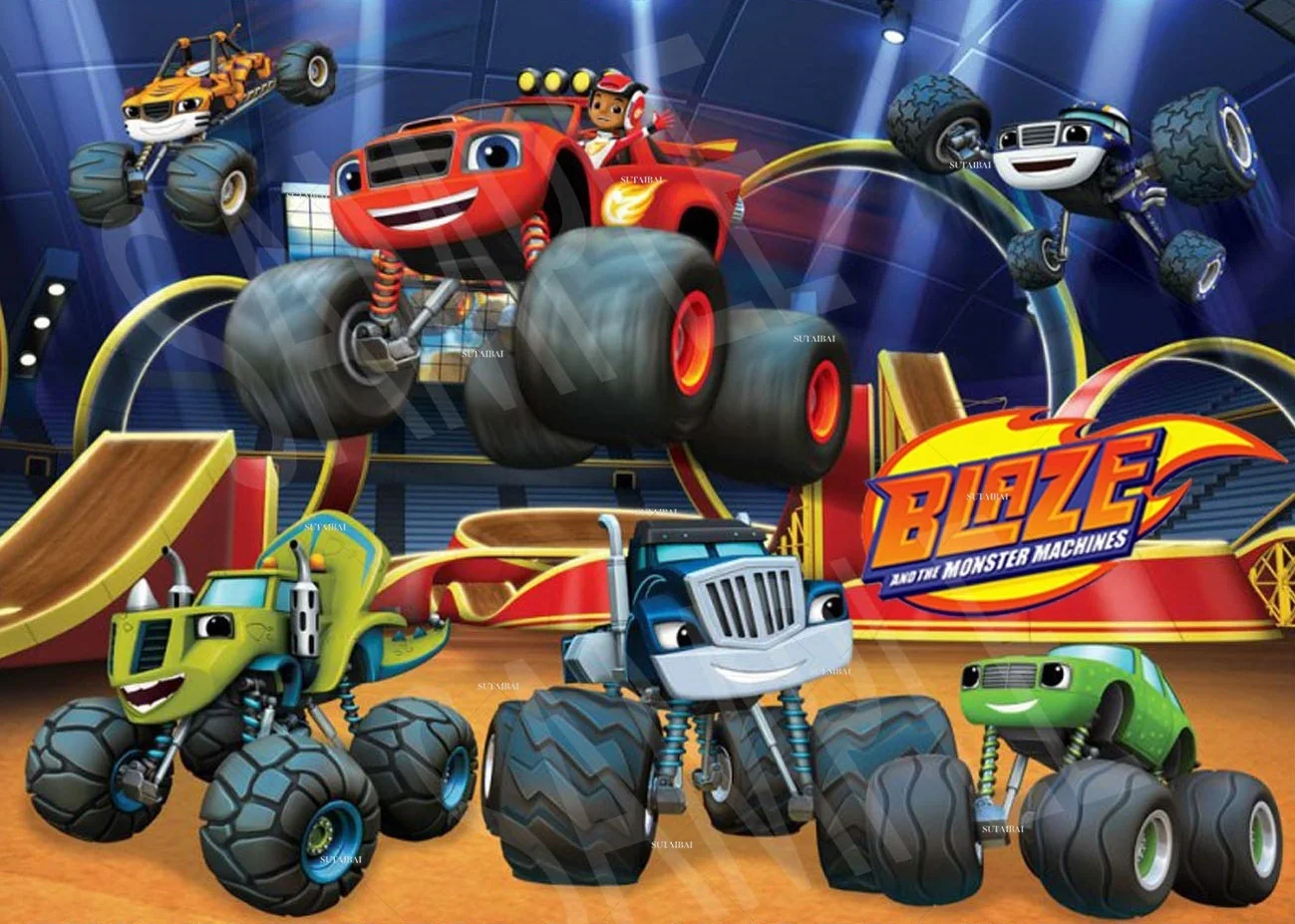 Виниловый фон для фотосъемки с изображением монстров и машины для мальчиков на день рождения