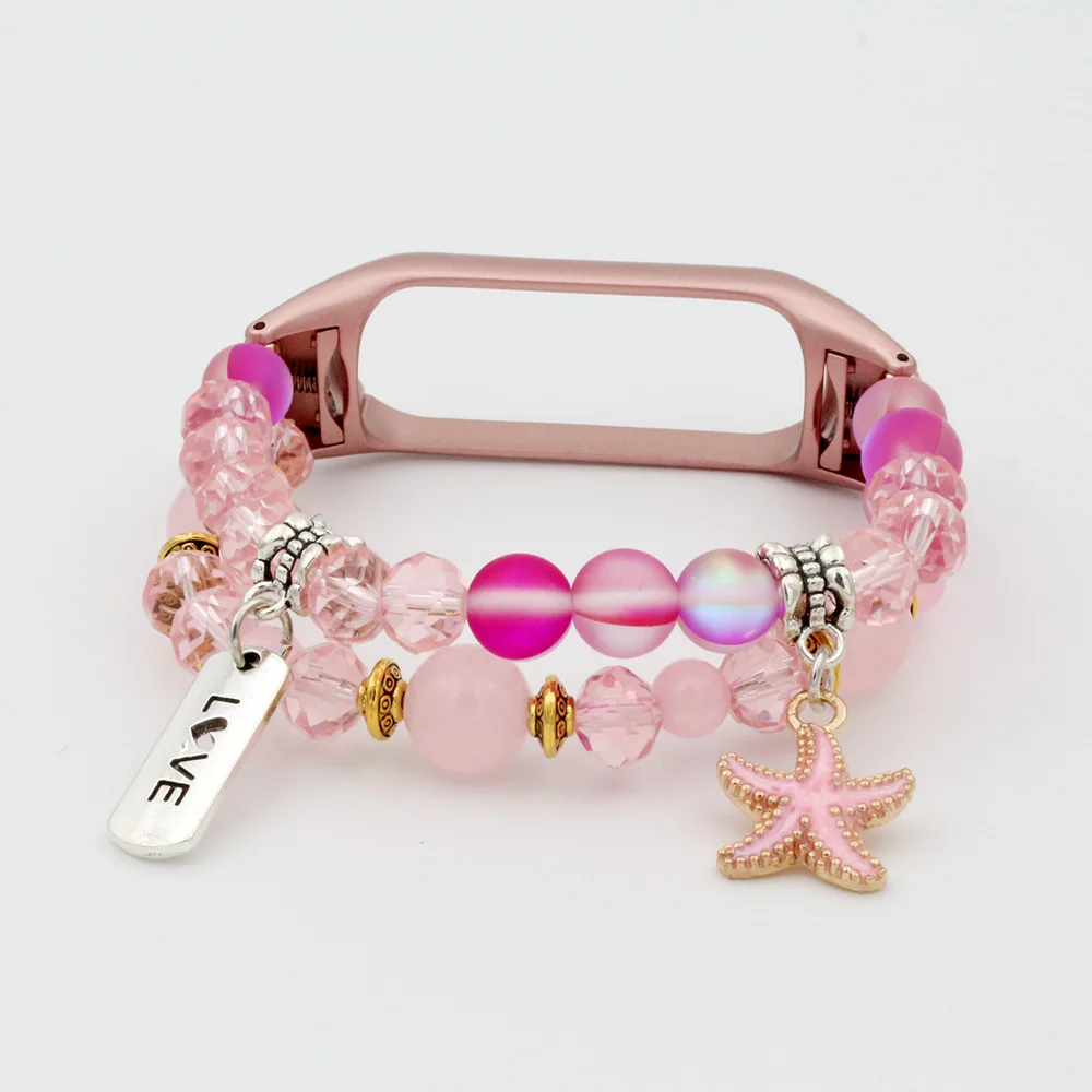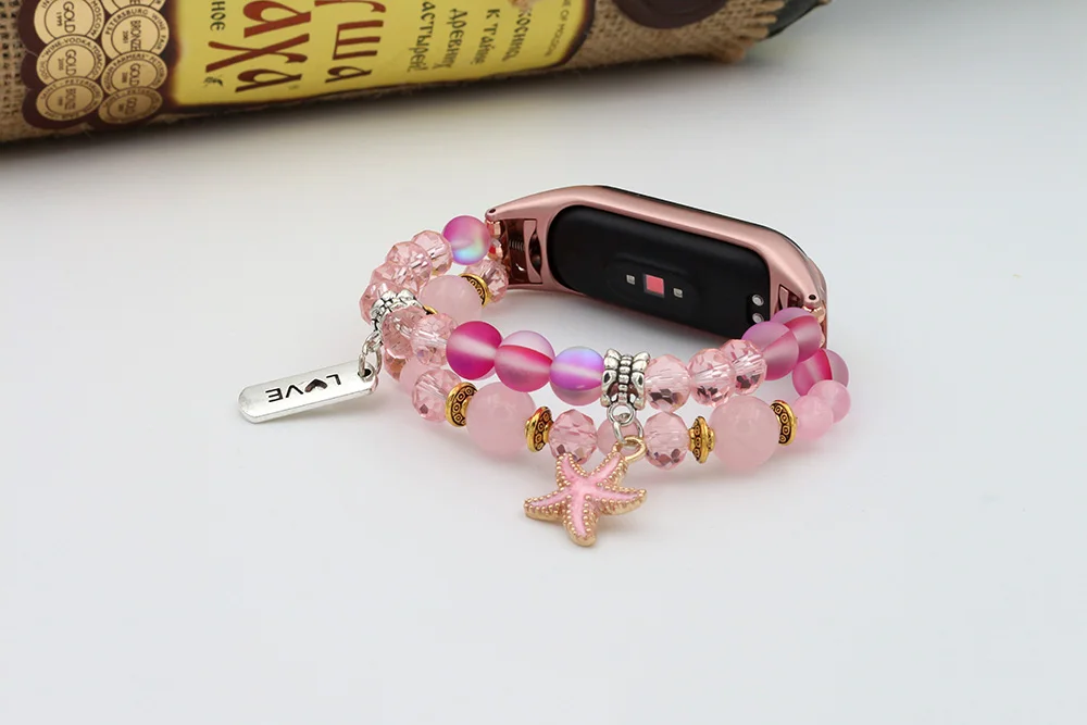 1. Совместимость с Xiaomi Mi Band 6/ Mi Band 5/ Mi Band 4/ Mi Band 3. (устройство Mi Band не входит в комплект)2. Изготовлено из нарядных ювелирных бусин с металлическими деталями, специально разработано для женщин, более нарядно выглядит и модно.3. Длина ремешка: около 125 мм (длина не включает часы), прочная эластичная веревка, работает долго и не ломается. Рекомендуется для детей женский с 5,8 дюймов-7,1 дюймов на запястье.4. Мы обновили рамку Mi band, есть небольшая разница с фотографиями.5. Если у вас большое запястье, пожалуйста, свяжитесь с нами, мы можем сделать специально для вас.