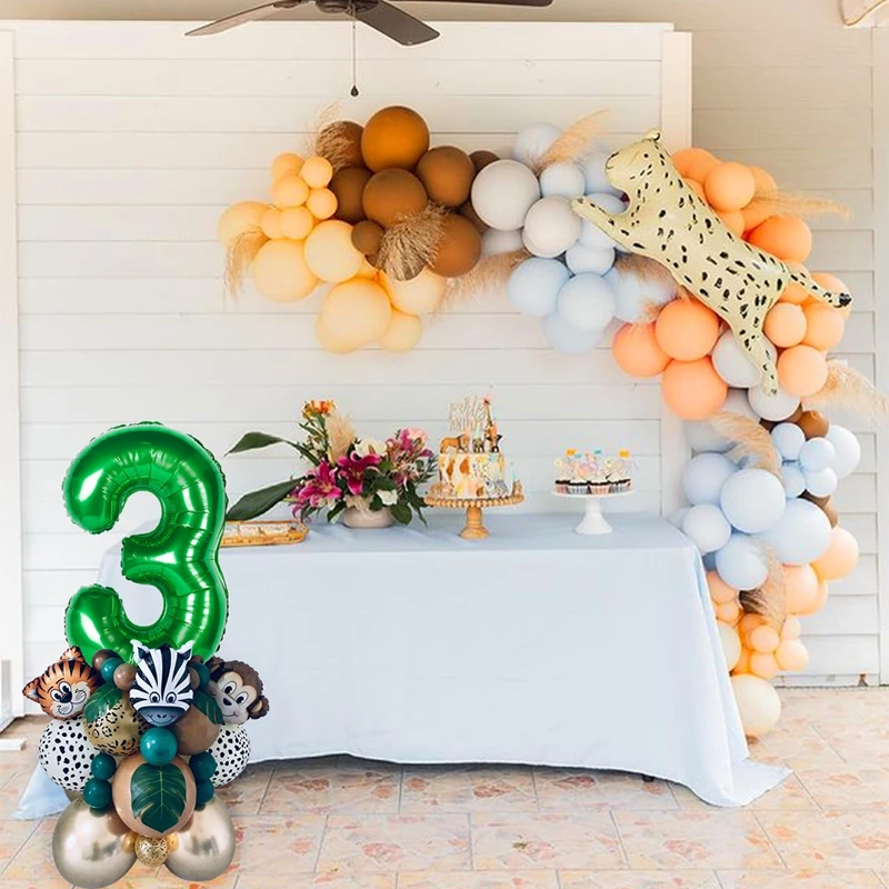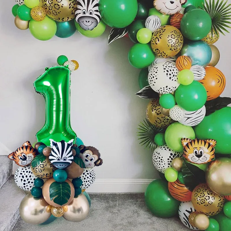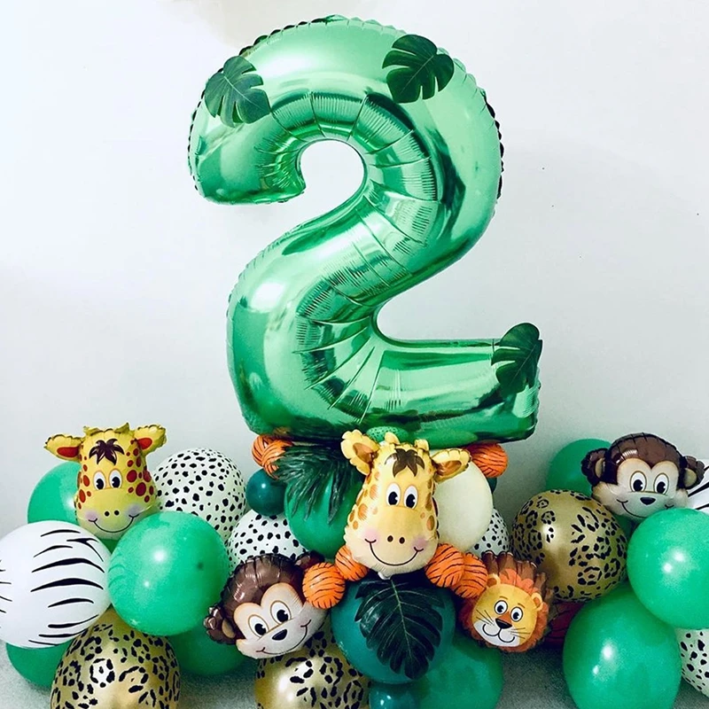Джунгли для вечеринки в стиле сафари, воздушные шары в форме цифр, набор 1, 2, 3 года, украшение для дня рождения, тигр, воздушный шар в виде обезьяны, Декорации для Babyshower для мальчиков