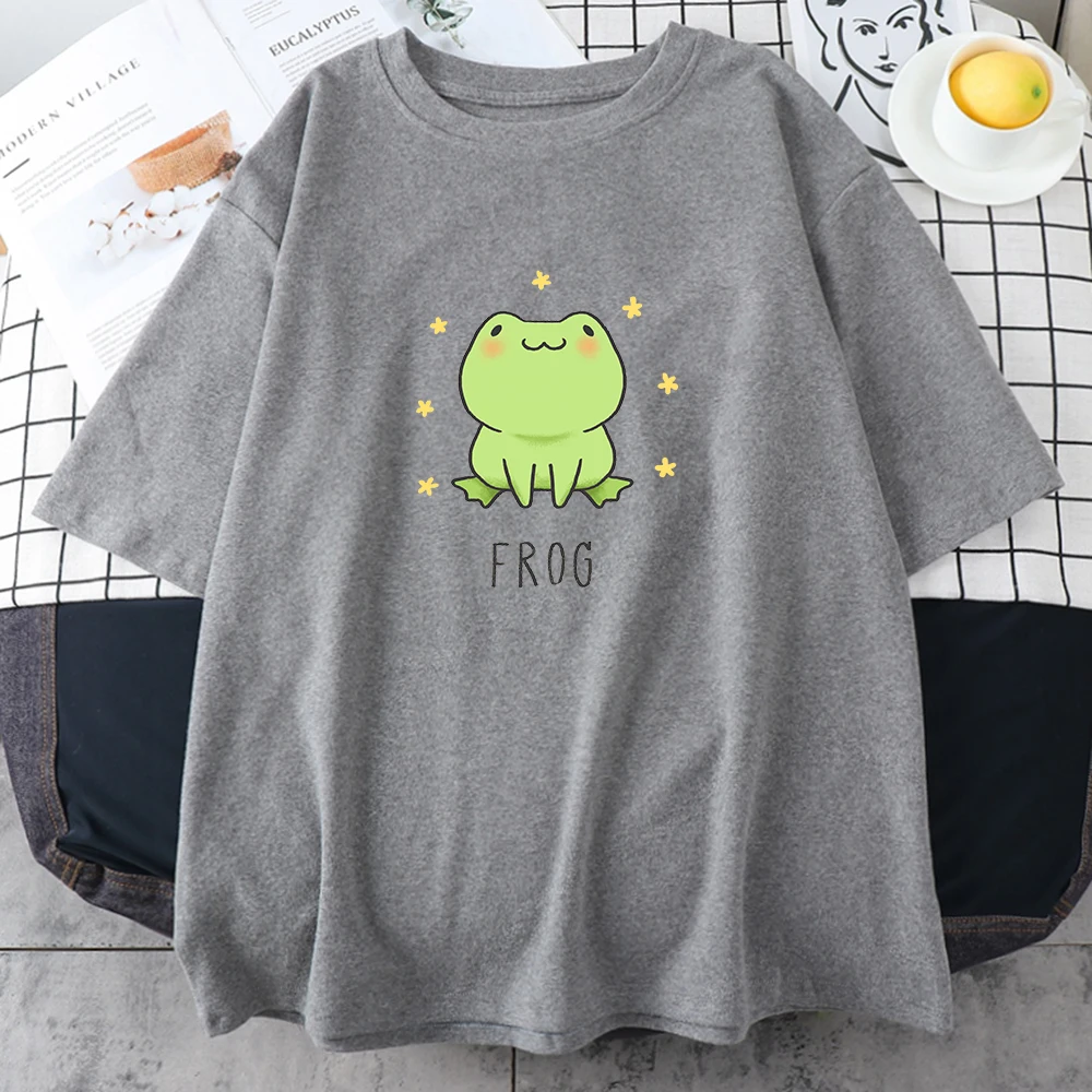 Футболка женская с принтом лягушки, свободная рубашка с коротким рукавом и круглым вырезом, уличная одежда в стиле Харадзюку, милый аниме, на лето