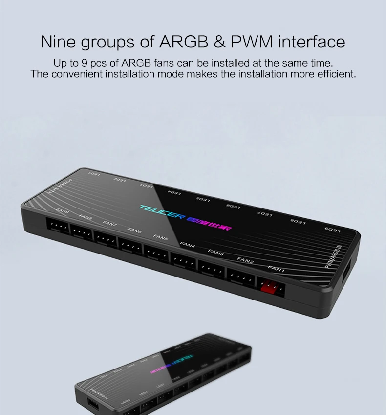 5V 3pin ARGB и 4pin PWM 2 в 1 USB хаб можно подключить к 9 шт. ARGB...