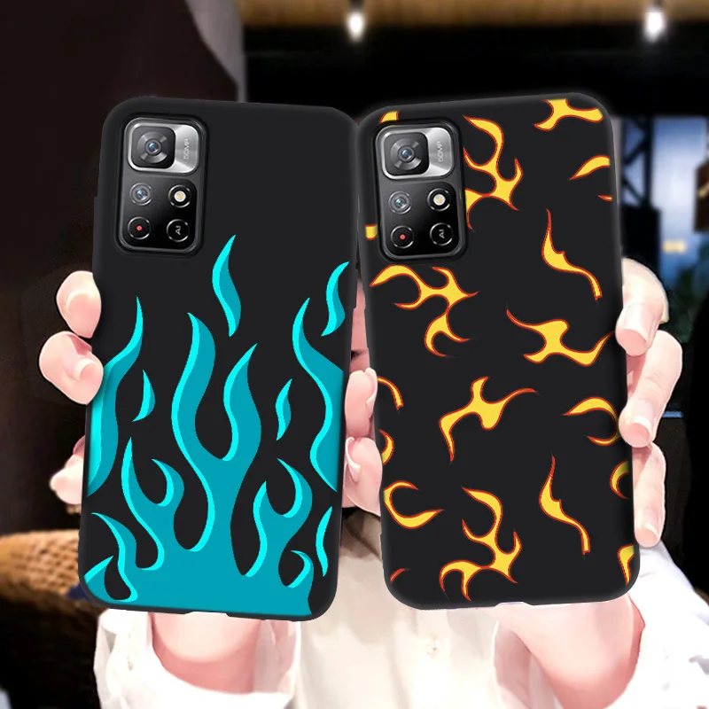 Противоударный матовый чехол с рисунком пламени для Poco X3 Pro Case Red mi Note 10 9 8 Pro Max 10S 9S 9T 9T 9A 9C NFC F3 Mi 11 Lite