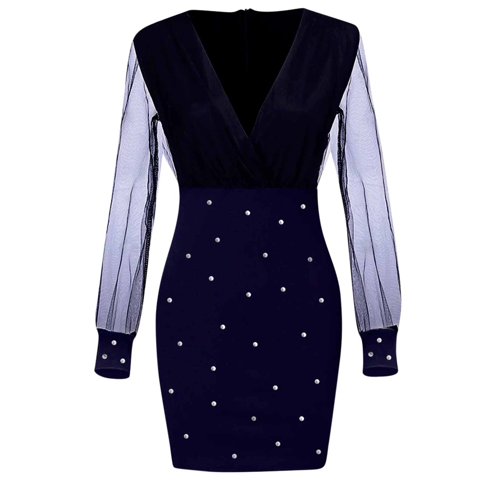 Женское платье из полиэстера, с блестками, длинным рукавом и V-обра...