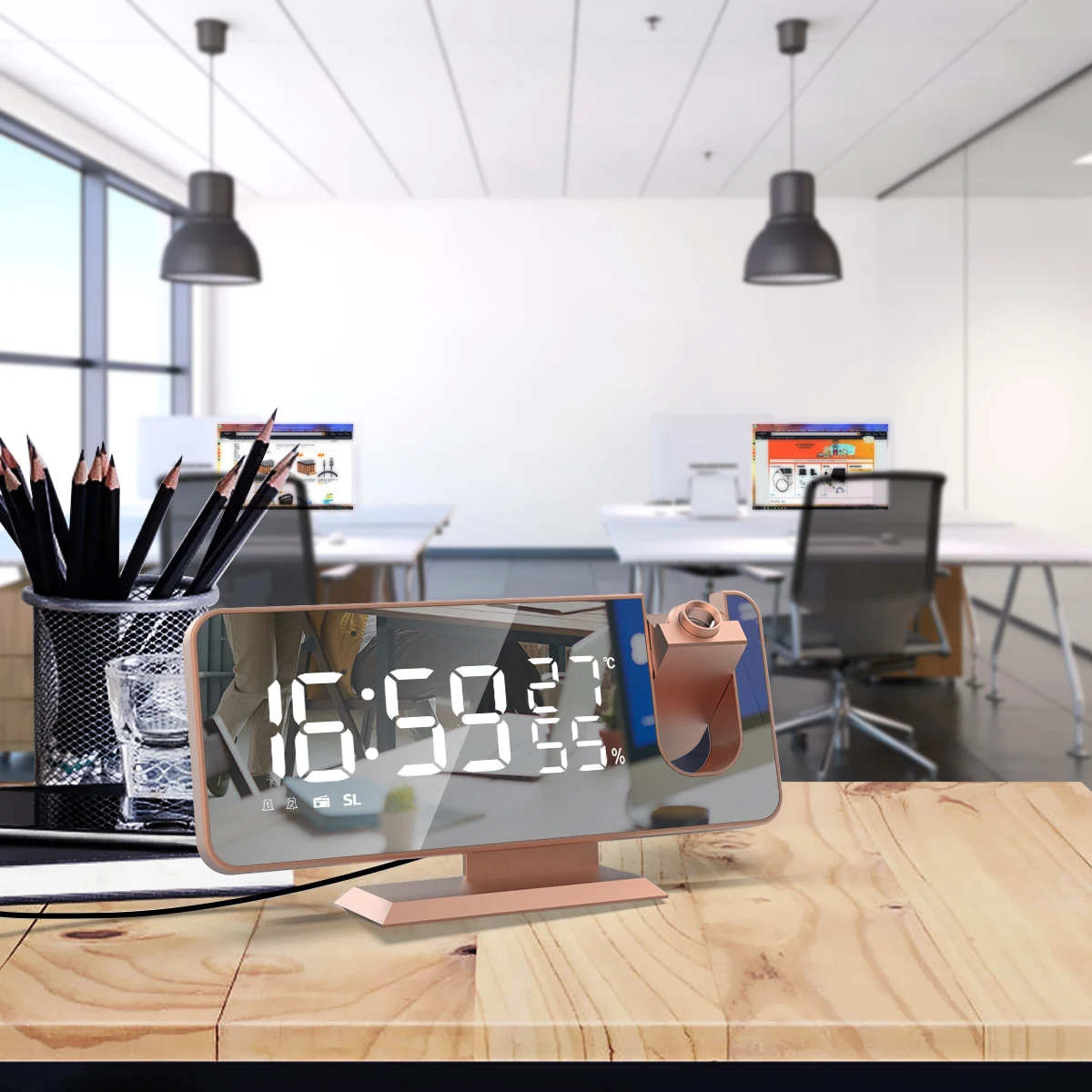 Двойной громкий умный будильник проекция для спальни радио цифровой будильник с USB зарядным устройством большой зеркальный светодиодный дисплей