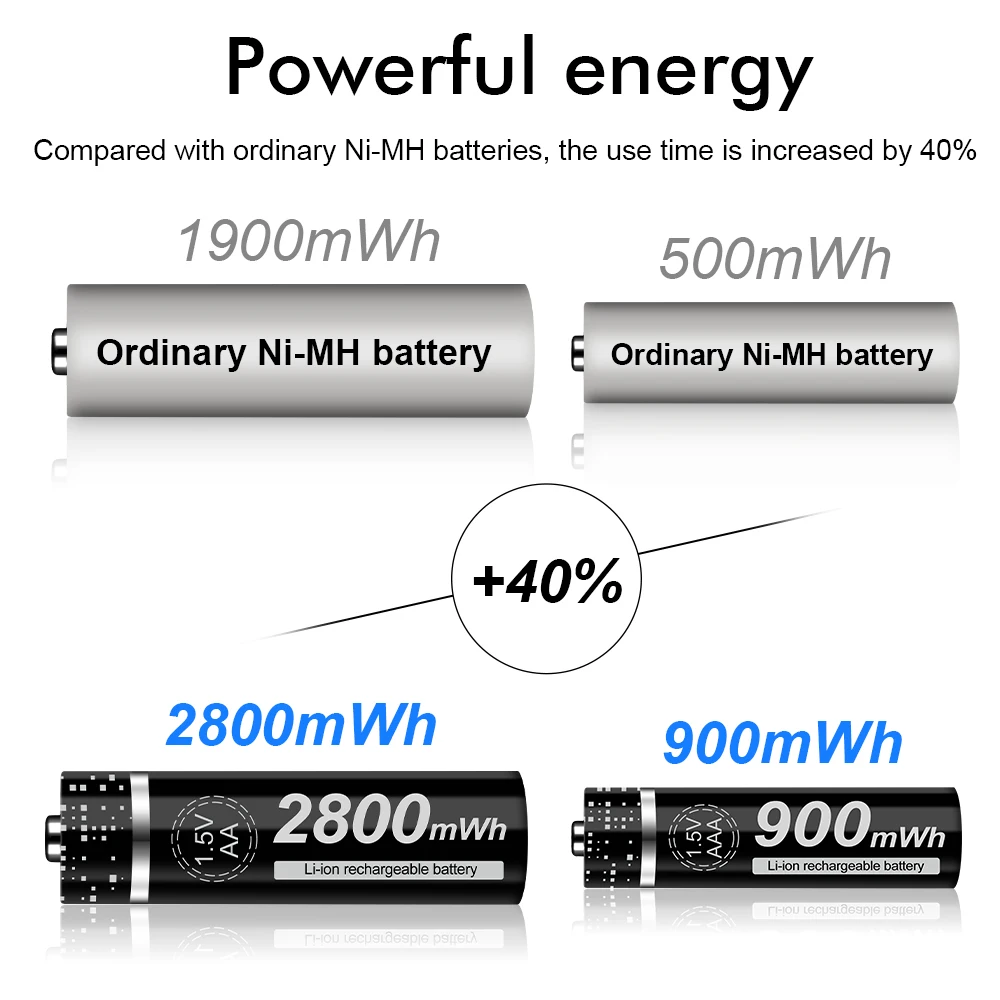 Батарея Тип: 1,5 v AA перезаряжаемый аккумуляторРейтинг Напряжение: 1,5 v ± 0,02 vМощность: 2800mWhРазмер: AAПереработка: 1800 раз