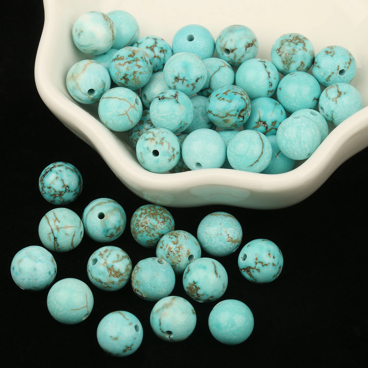 Натуральные бусины, гладкие бирюзы, синий Howlite, круглые бусины из камня, аксессуары для браслетов 15 дюймов, 4-12 мм
