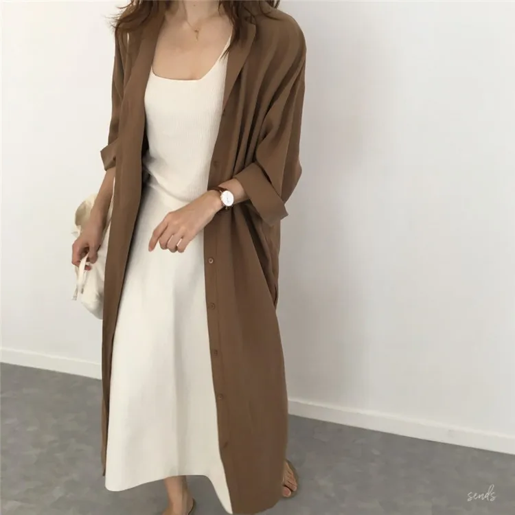 Женское длинное платье-кардиган, элегантное корейское свободное пла...