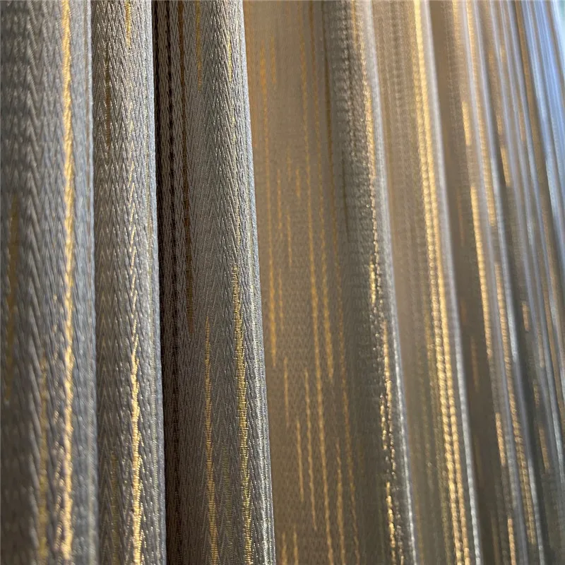 Роскошные вертикальные полосы золотая нить жаккардовые занавески высокоточная текстура затемненные занавески s для гостиной спальни на заказ #4