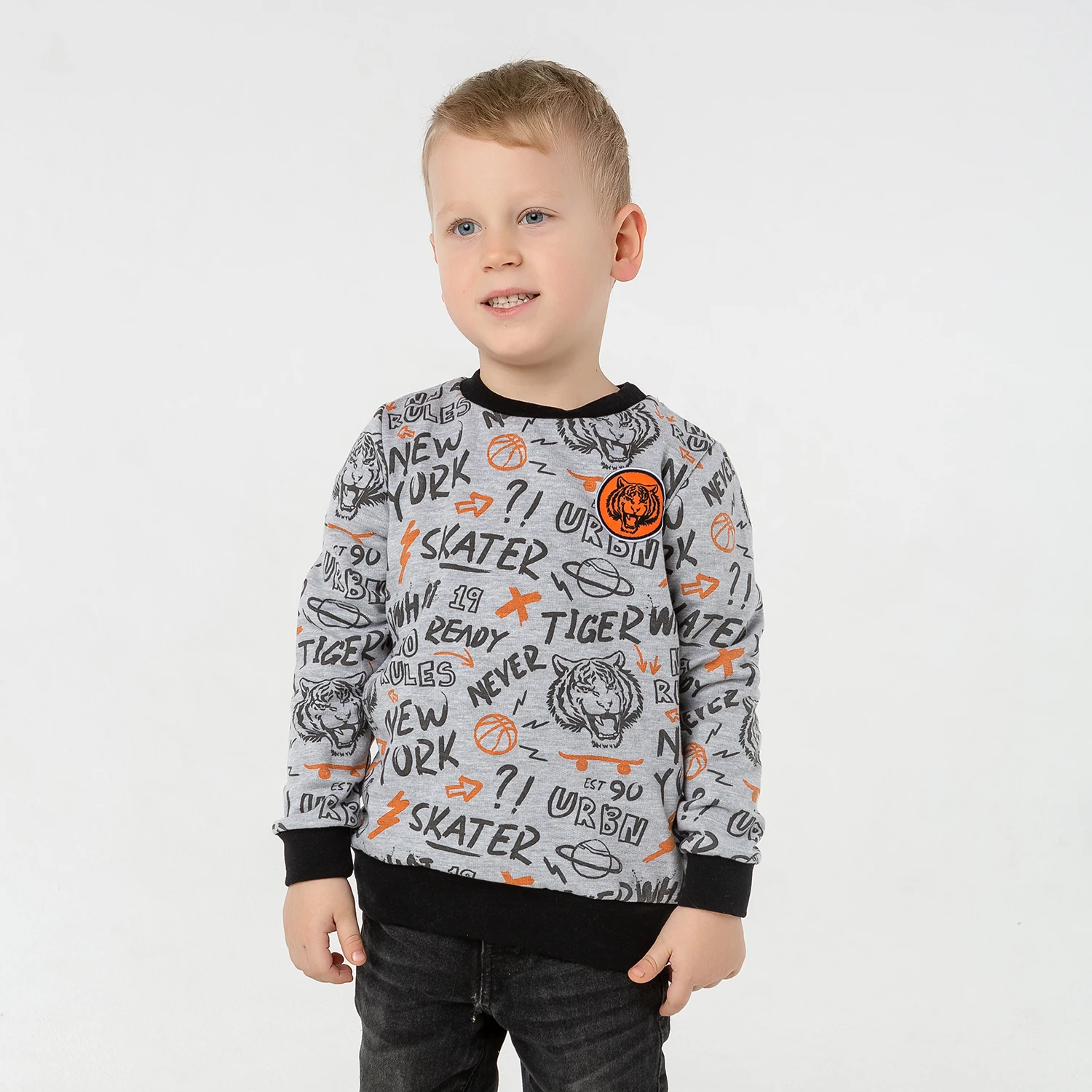 Самым дорогим и любимым – клёвые и нужные вещи! Джемпер для мальчика с длинным рукавом изготовлен из натурального хлопка с добавлением полиэстер (65% хлопок, 35% полиэстер). Мягкая гипоаллергенная ткань подарит заботу о коже, сохранит тепло и позволит ей дышать. Свитшот для мальчика с актуальным дизайном не потеряет цвет после стирки. Всё продуманно до мелочей – дышащая ткань, цветовая гамма, обработка швов и горловины для удобной носки! Данная модель будет прекрасно сочетается с джинсами или с брюками из одноименной коллекции коллекции «Tiger». Подарите Вашему ребенку самые лучшие вещи вместе с КотМарКот.