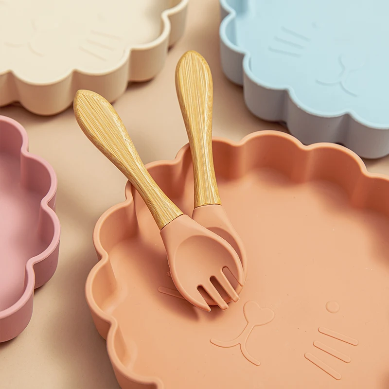 10 шт., Детские Силиконовые тарелки, вилка, ложка
