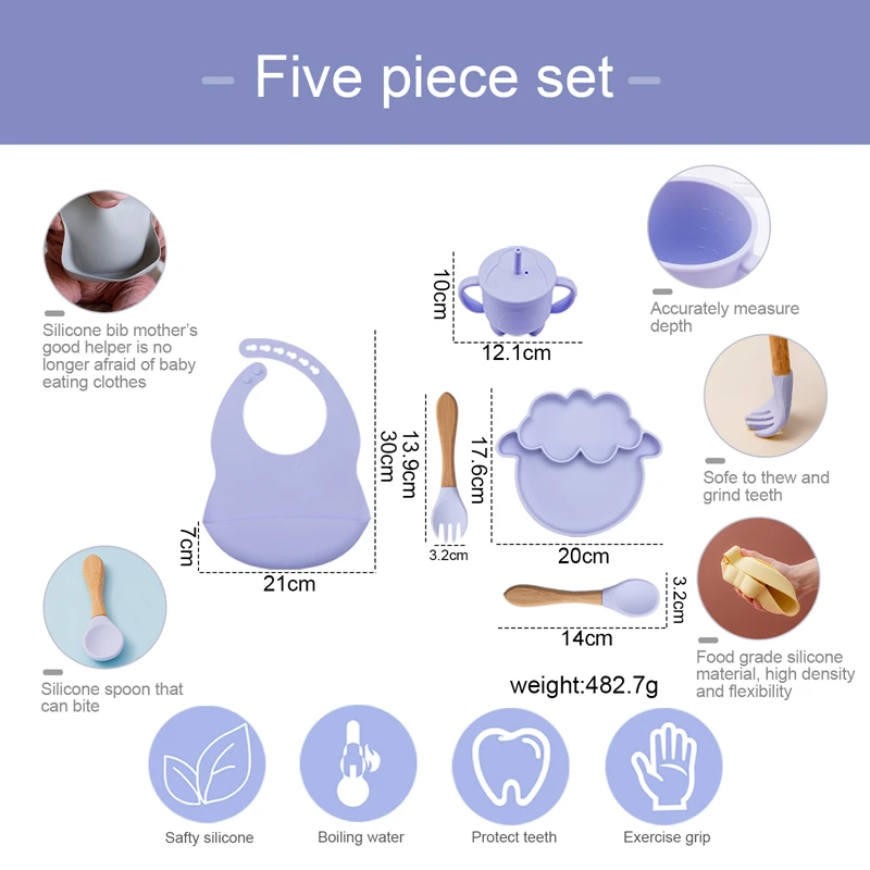 10 шт., набор тарелок для малышей, BPA, бесплатная доставка, силиконовая миска для еды, нагрудник, тарелка, вилка, ложка, чашка для кормления, набор для детской тарелки
