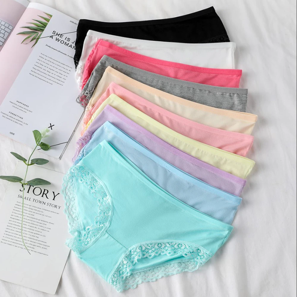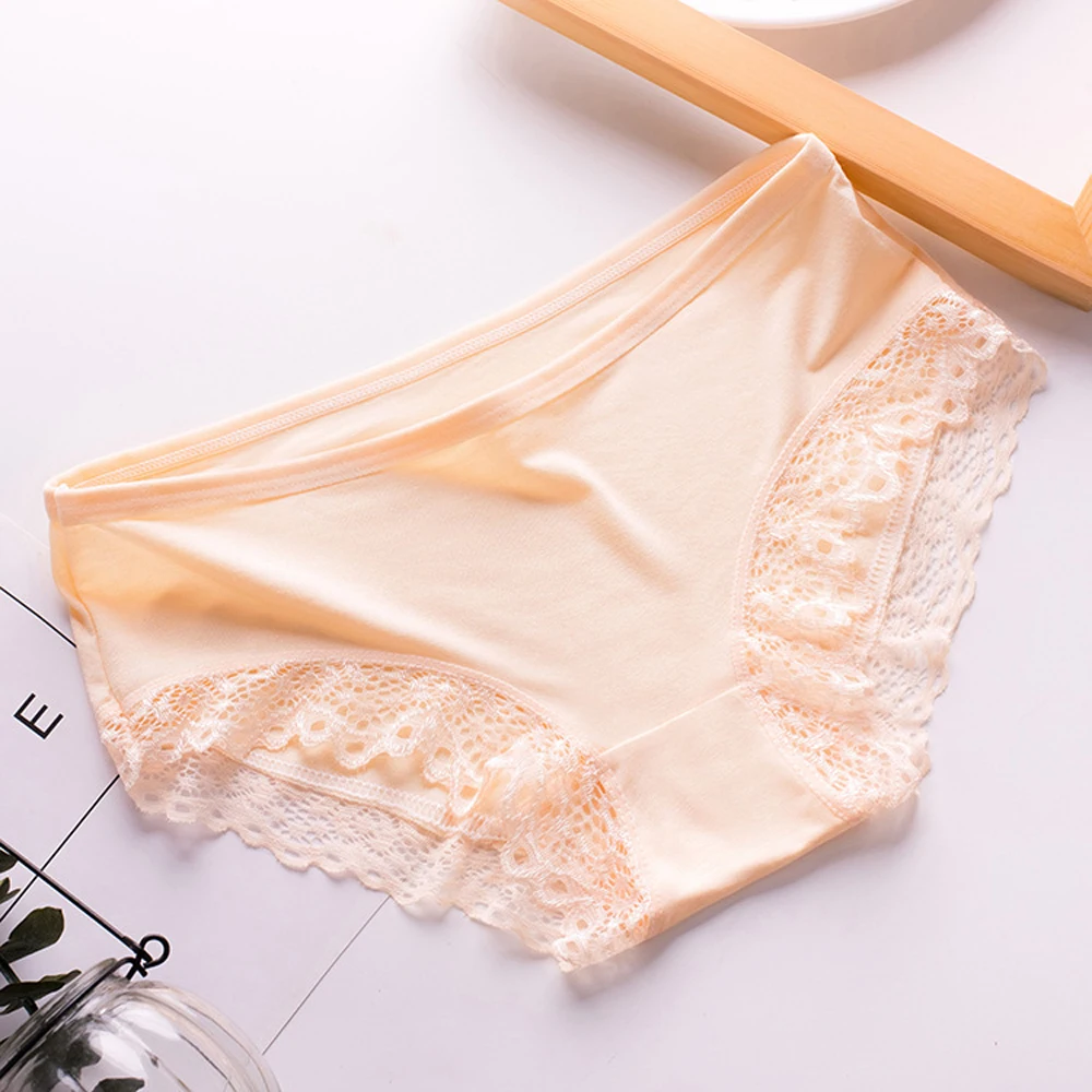 2 шт., женские трусики из хлопка и модала, с кружевом