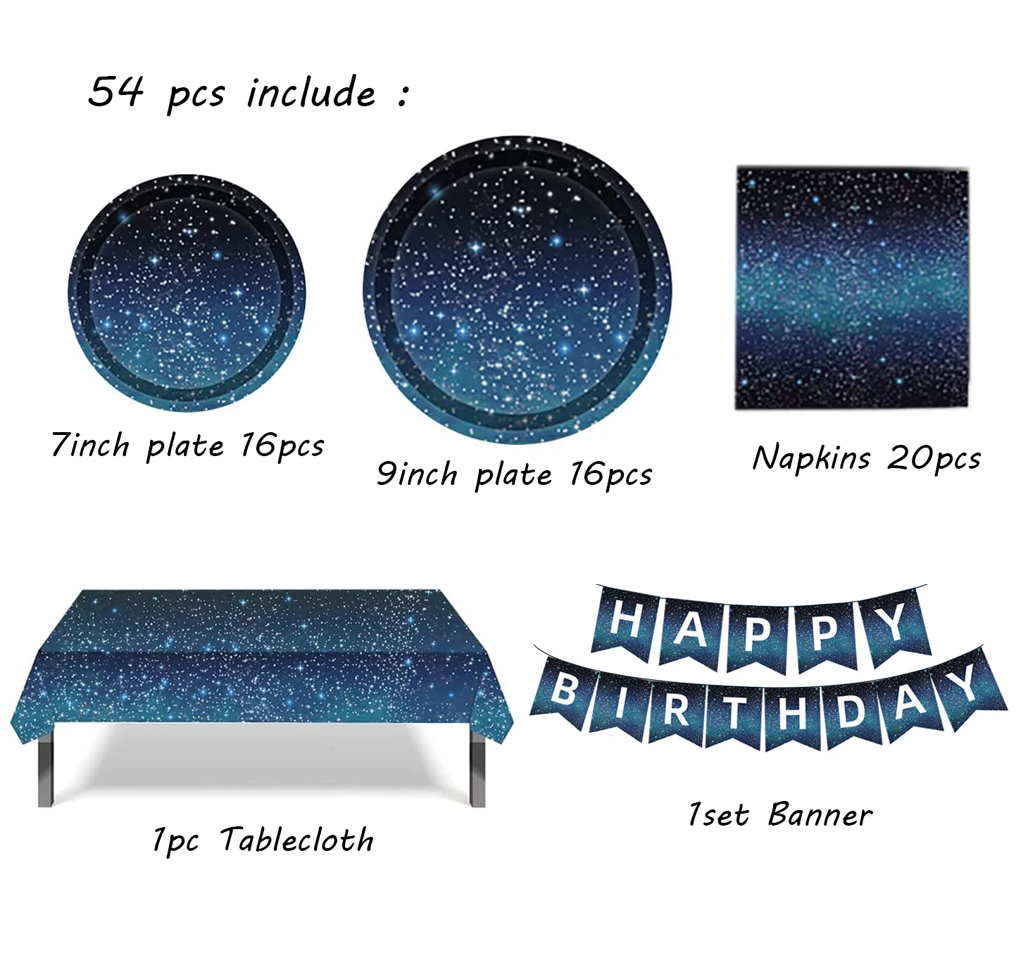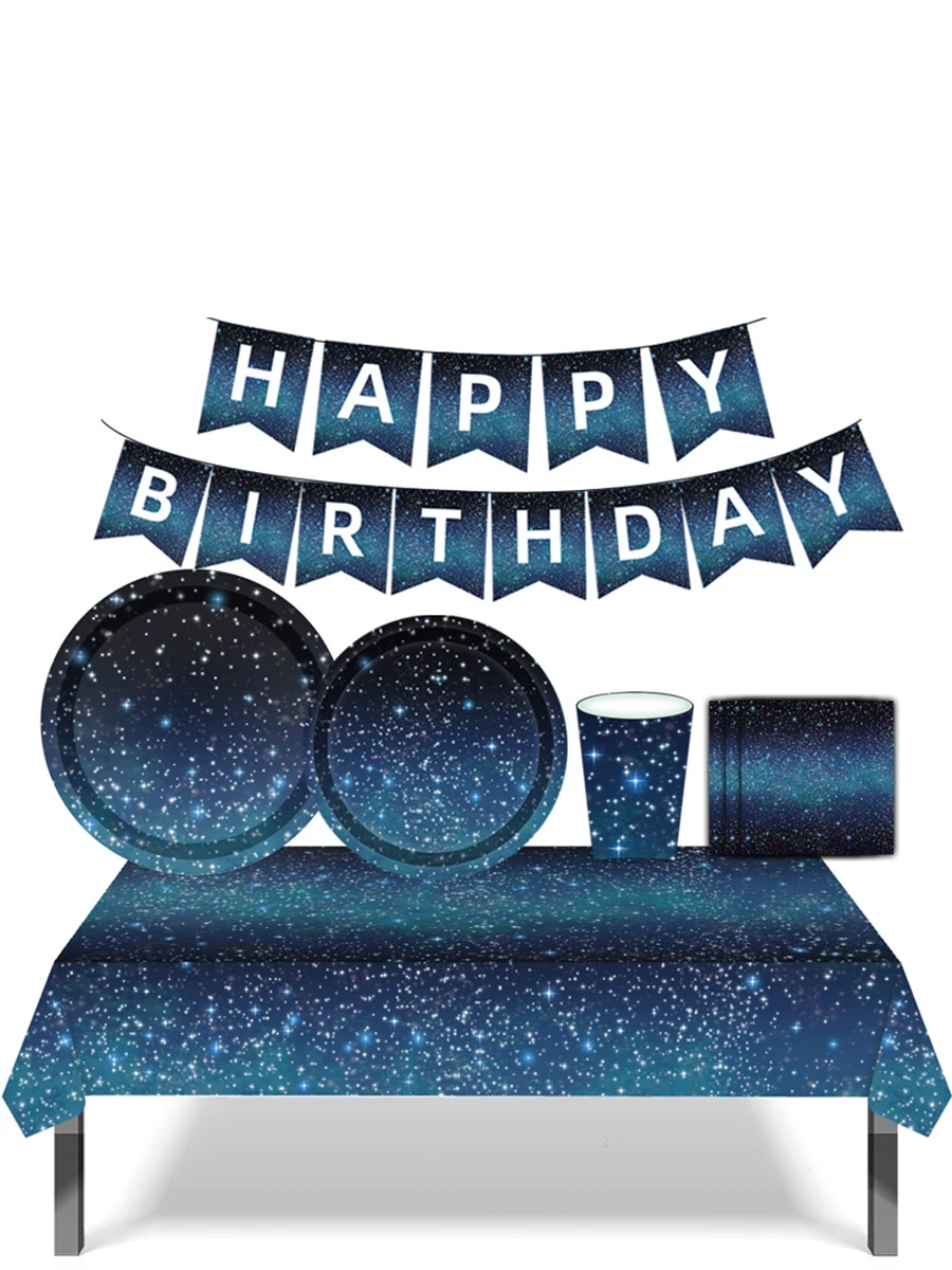 Пространства вечерние Звездное День рождения вечерние поставки Звездная ночь свет украшения вечерние свадебные сувениры включает в себя скатерть тарелки салфетки пространство Вечерние