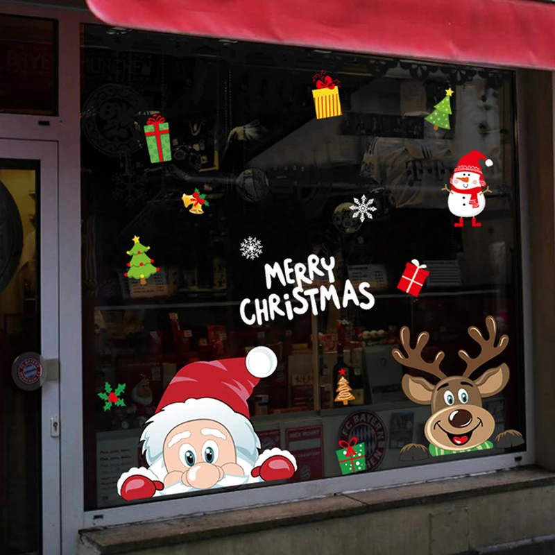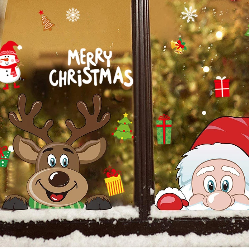 Счастливого Рождества наклейки на стену Окно Стекло наклейки фотообои новый год