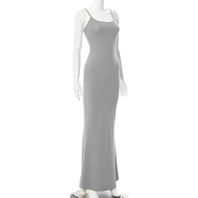 Женское платье-макси на бретелях-спагетти, повседневное облегающее однотонное длинное платье-русалка без рукавов, весна-лето 2022