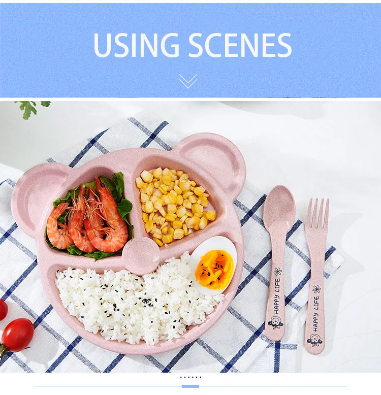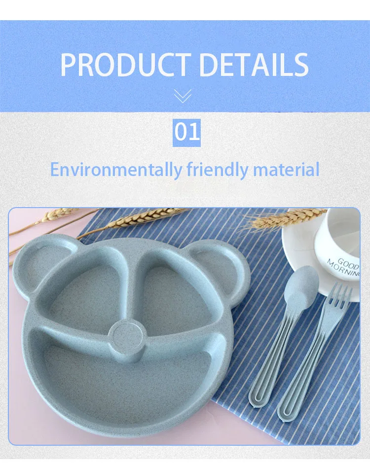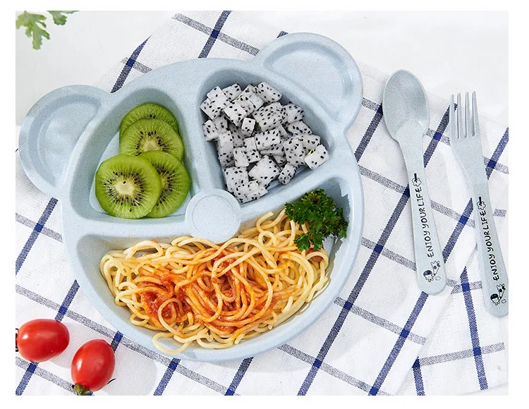 Детская миска + ложка + вилка, столовая посуда, детские блюда с мультяшным медведем, набор обеденной посуды для детей, тренировочная тарелка