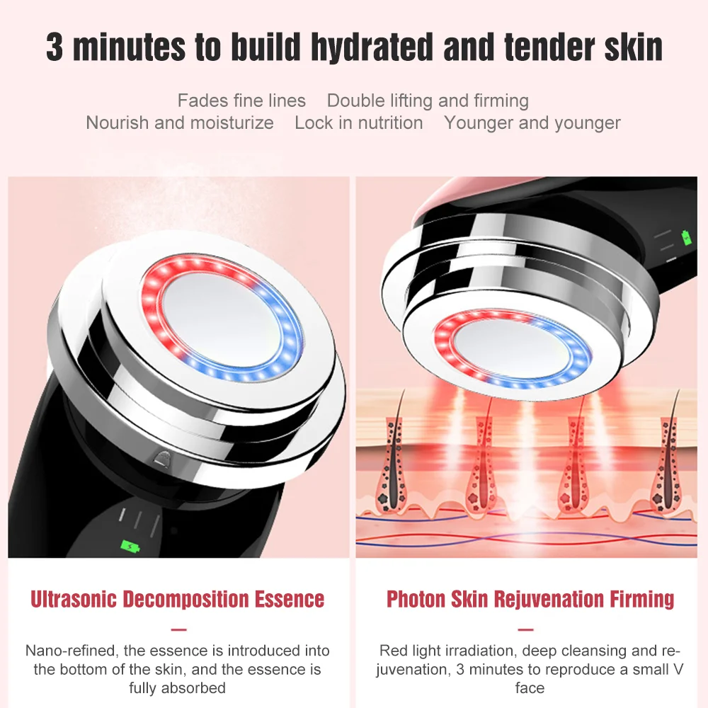 Ультразвуковой скруббер массажер для лица 2 + 3 набора ионов угрей очиститель пилинг очиститель для лопаты EMS светодиодный аппарат для подтяжки лица