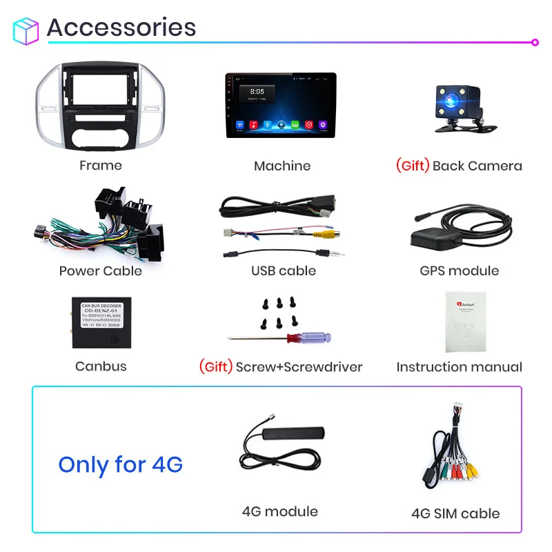 > Junsun V1 для Mercedes Benz Vito W447 2014-2021 функции> Основные функции: Android 10,0 + 10 дюймов IPS Экран + 4 ядра 1,2 ГГц (восемь ядер 1,8 ГГц Dual Core опция + DDR3 1 ГБ флэш-памяти (1 ГБ/2 Гб опционально) + 16 Гб памяти (16 Гб/32 Гб опционально) + WIFI (4G сеть опционально) + Зеркальное соединение + управление рулевым колесом + RDS/DSP (опционально) + управление рулевым колесом> Специальные функции:1. Штифт-штифт: Кабель питания Junsun radio' является штифтом для штифта, прост в установке;2. Встроенный Android Auto: версия V1 поддерживает, просто используйте кабель телефона, подключите его, стабильный и простой в использовании;3. Поддержка подголовника: только поддержка версии Junsun V1;Дополнительные аксессуары> Голосовое управление AI: только Junsun поддерживает PRO версию, просто скажите, что командное слово контролирует радио без рук, делает привод более безопасным;> ADAS DVR, контроль давления в шинах, OBD2, внешний микрофон, кабель RCA; > OSD языкРусский, английский, испанский, итальянский, французский, чешский, арабский, немецкий, иврит, китайский, эстонский, польский, филиппинский, финский, корейский, голландский, хорватский, латышский, литовский, румынский, норвежский, португальский, японский, шведский, тайский, турецкий, украинский, венгерский, словацкий, датский, словенский. > Отличное обслуживание клиентовВ Junsun Наша цель-продолжать усердно работать, чтобы сделать инновационное оборудование и программное обеспечение автомобильного мультимедийного плеера радио, чтобы дать вам этот индивидуальный опыт.Мы предоставляем обновления для прошивки, программного обеспечения, gps-навигационных карт бесплатно.