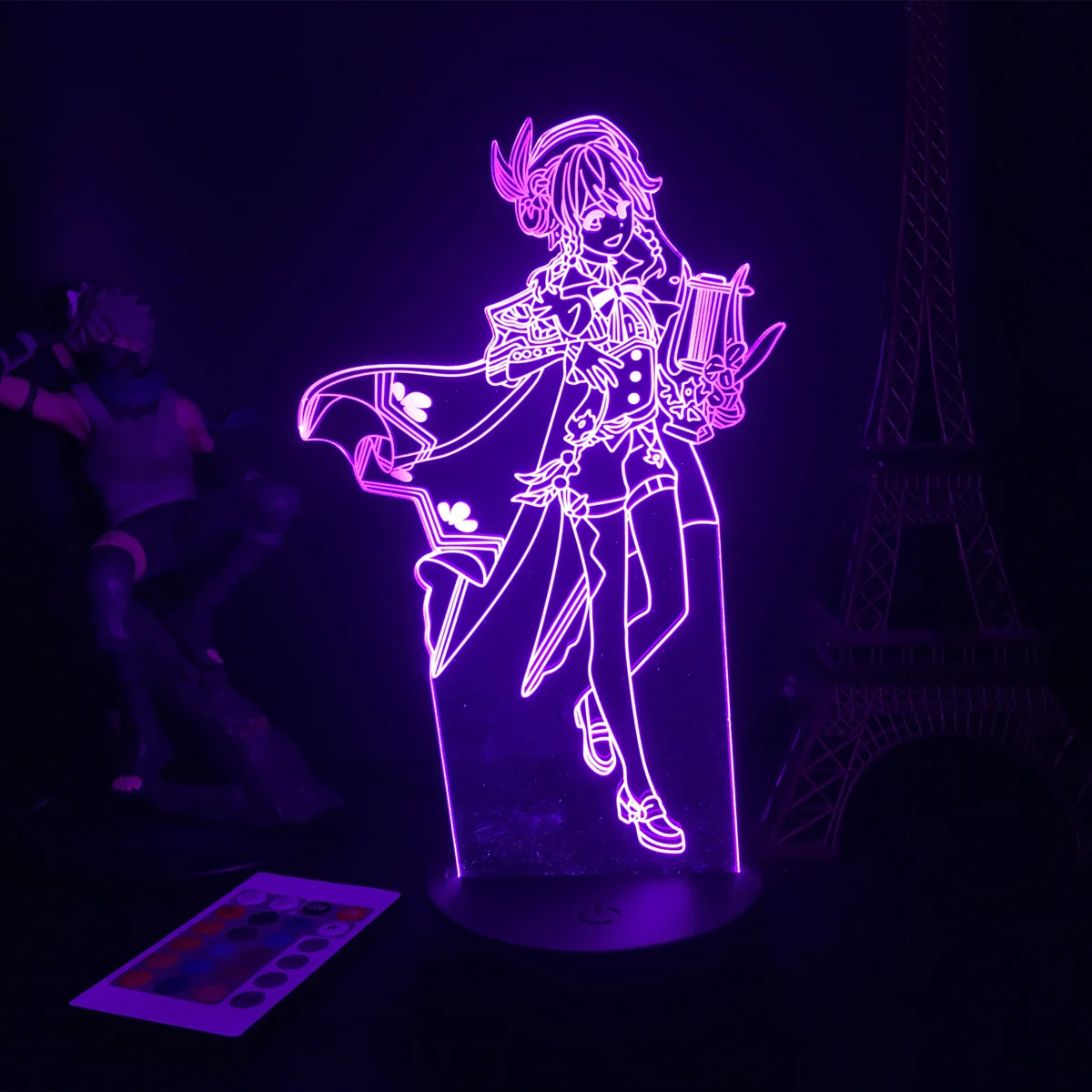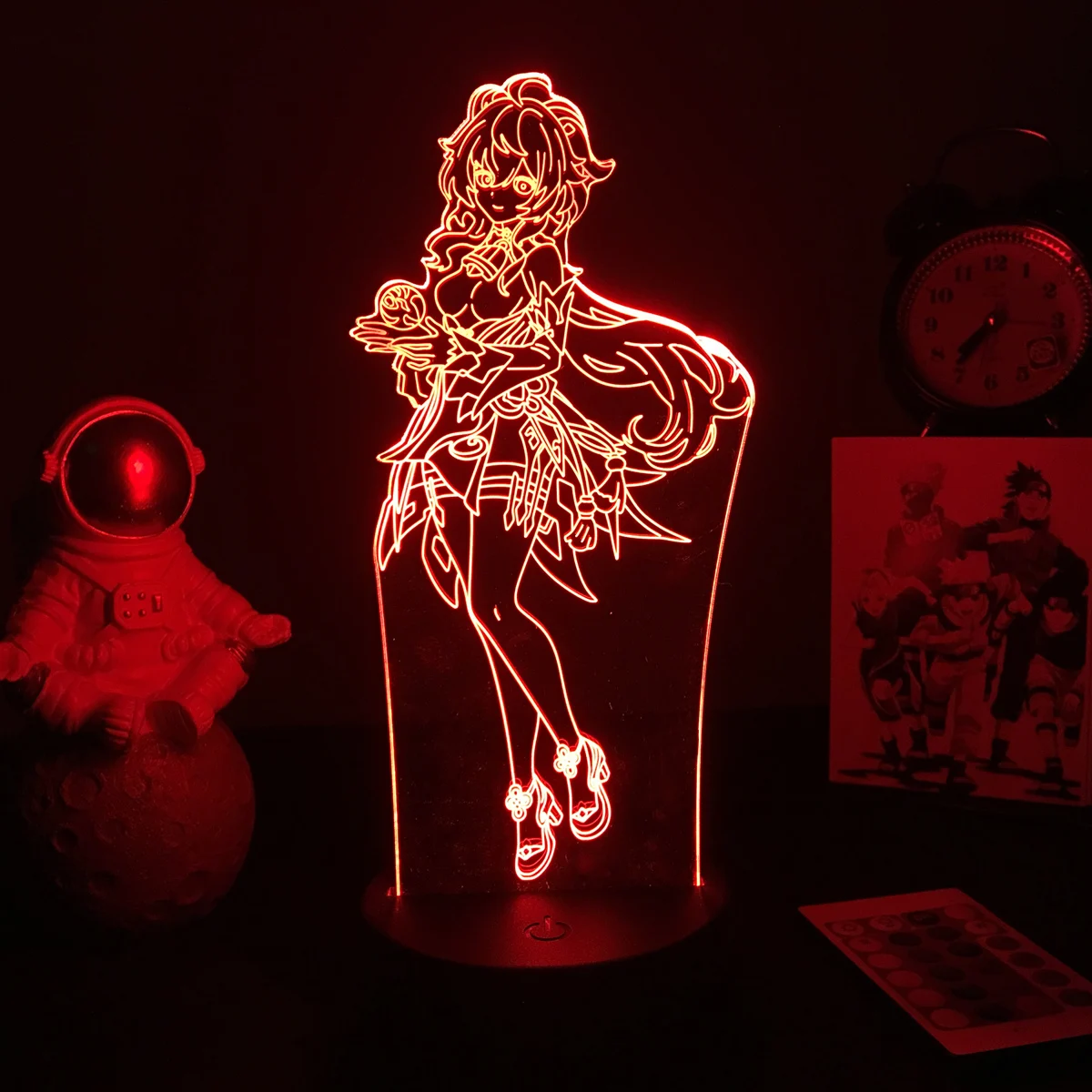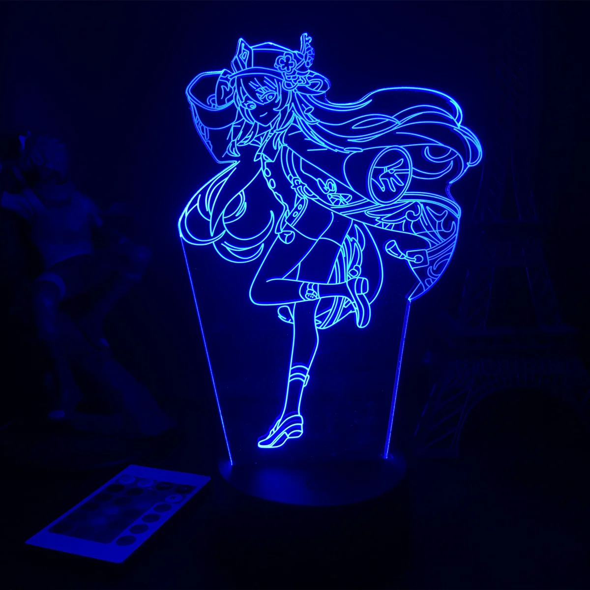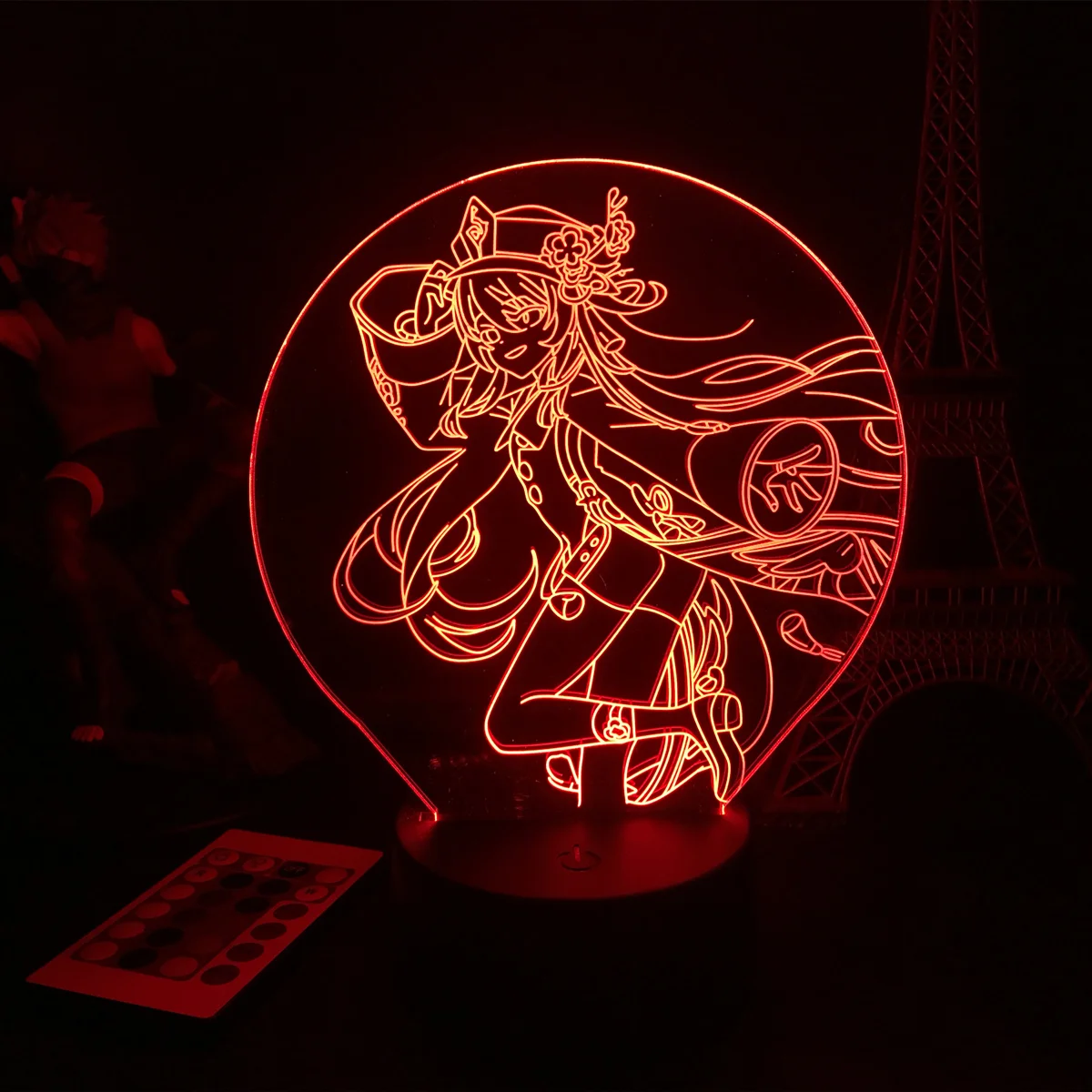 Ударные настольные лампы Genshin, фигурка Ху Тао, 3D светодиодное ночное освещение, Настольная Аниме игра, персонаж, детский подарок, декор для домашней комнаты цветов