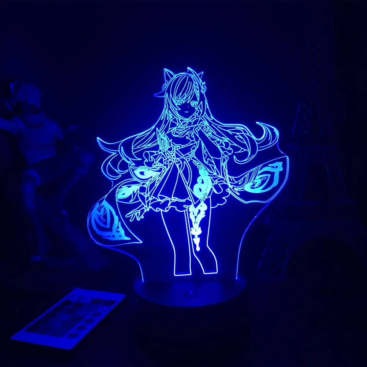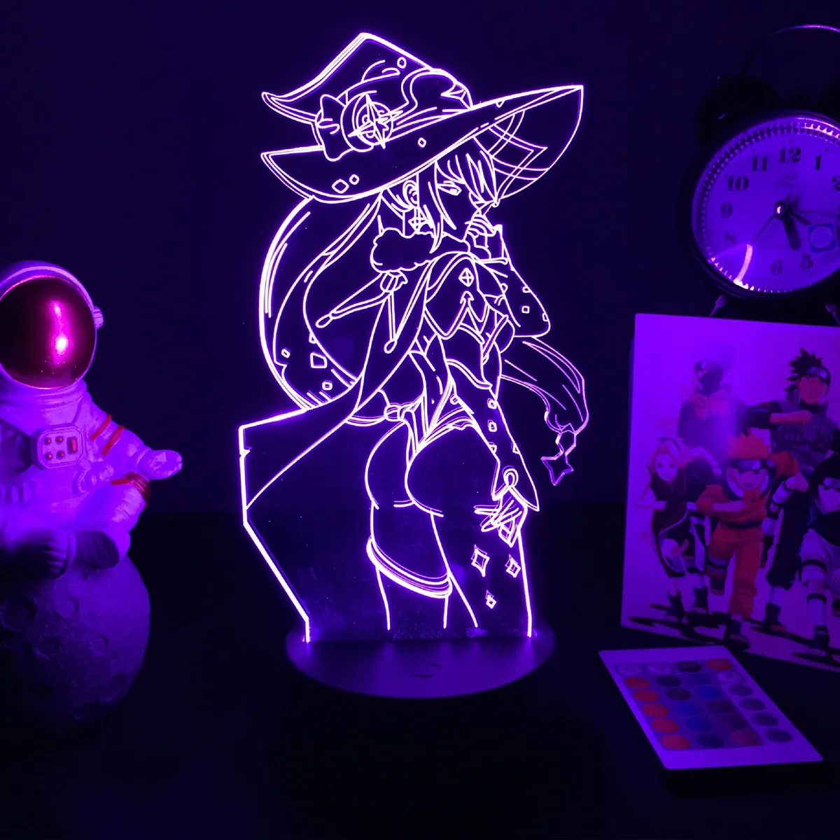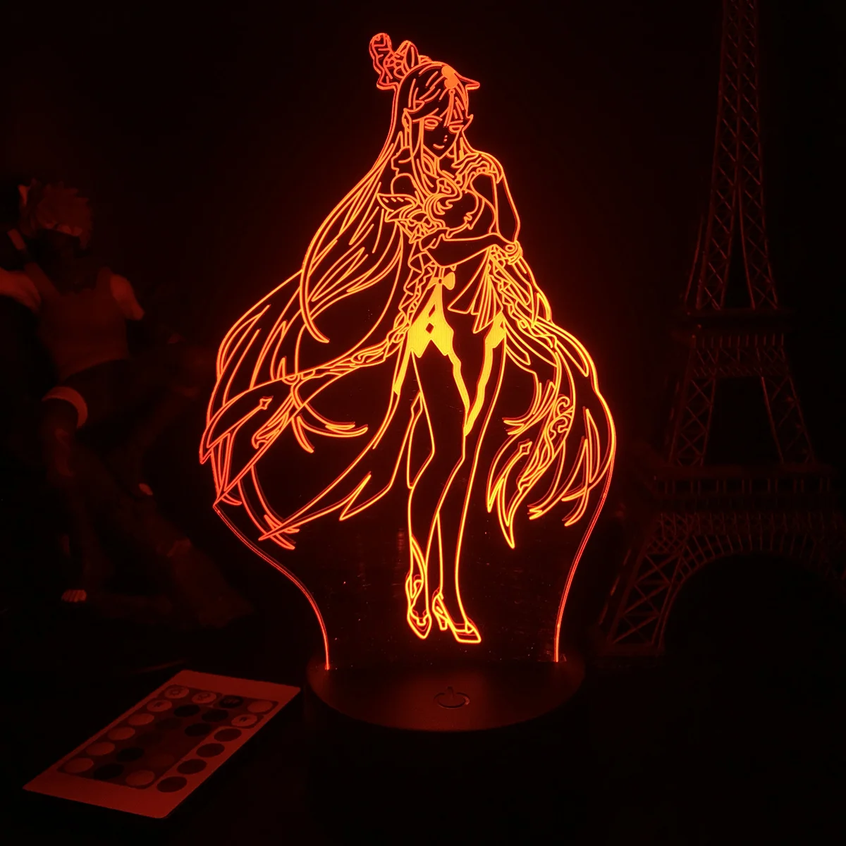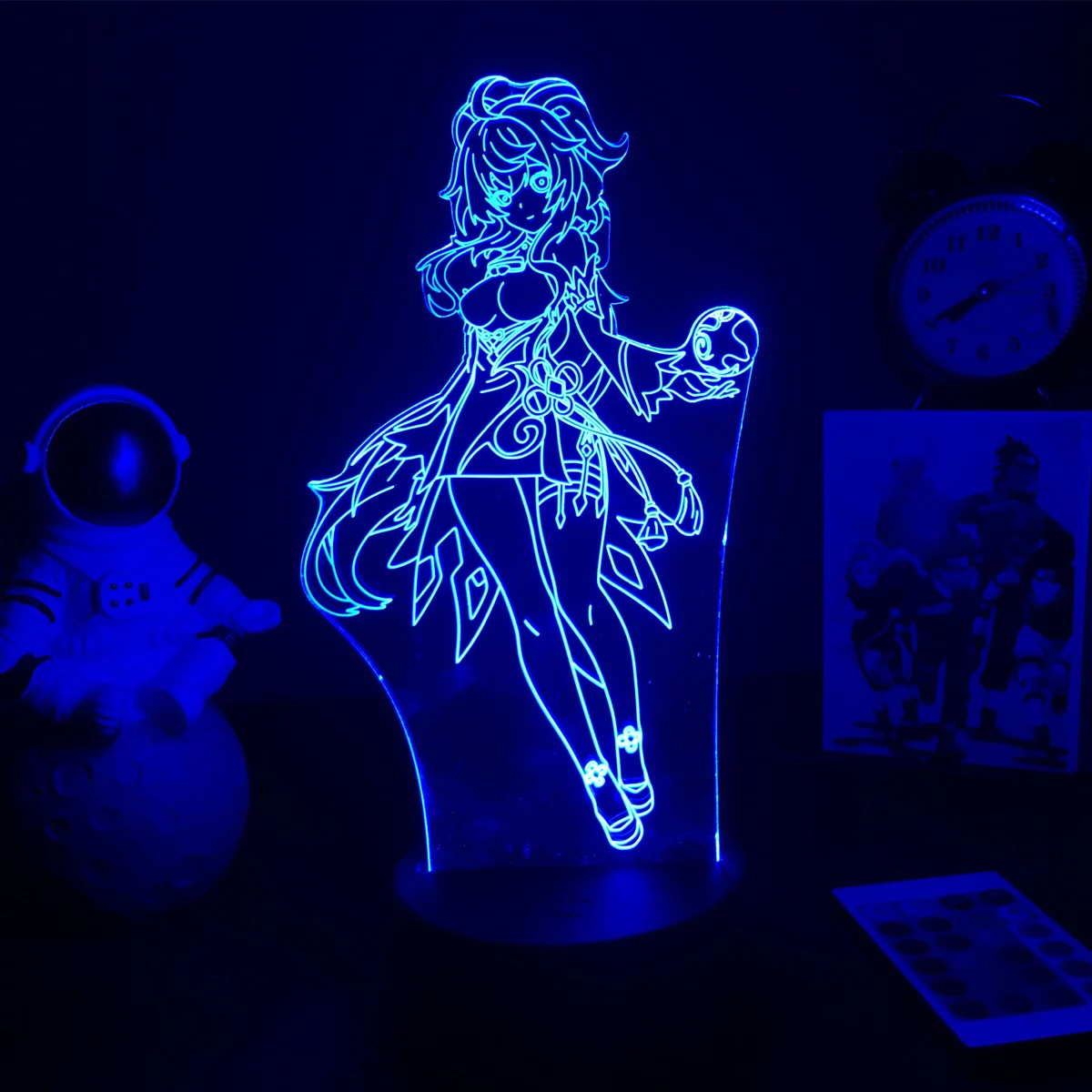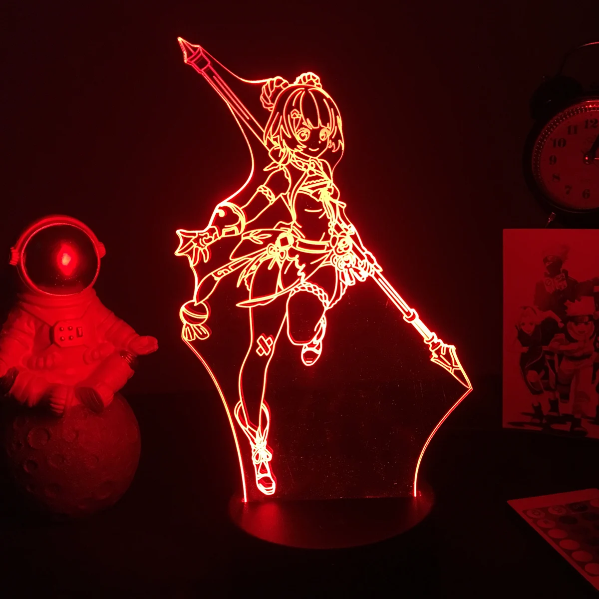 Ударные настольные лампы Genshin, фигурка Ху Тао, 3D светодиодное ночное освещение, Настольная Аниме игра, персонаж, детский подарок, декор для домашней комнаты цветов