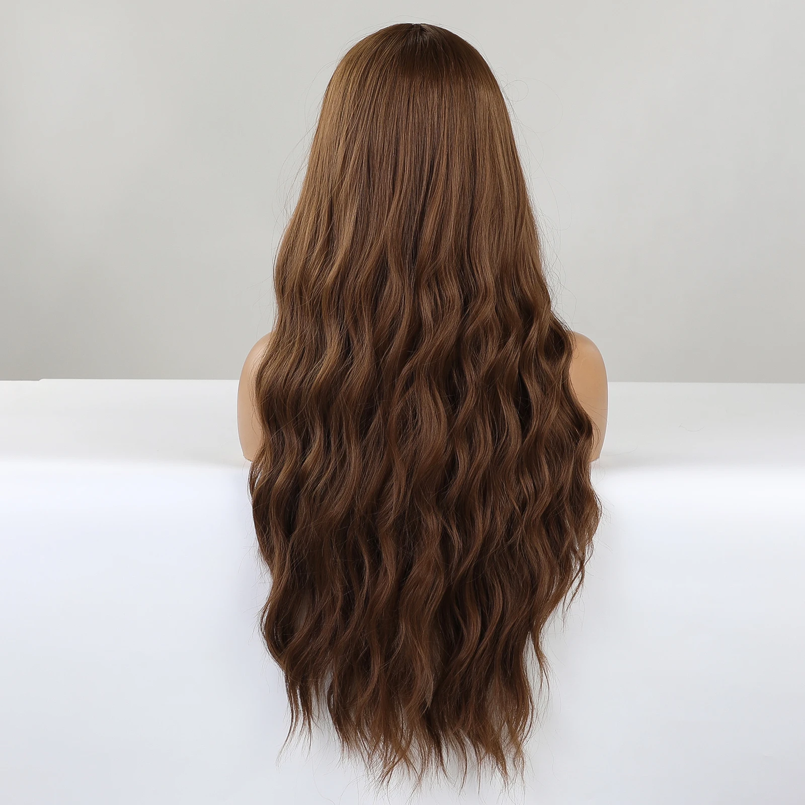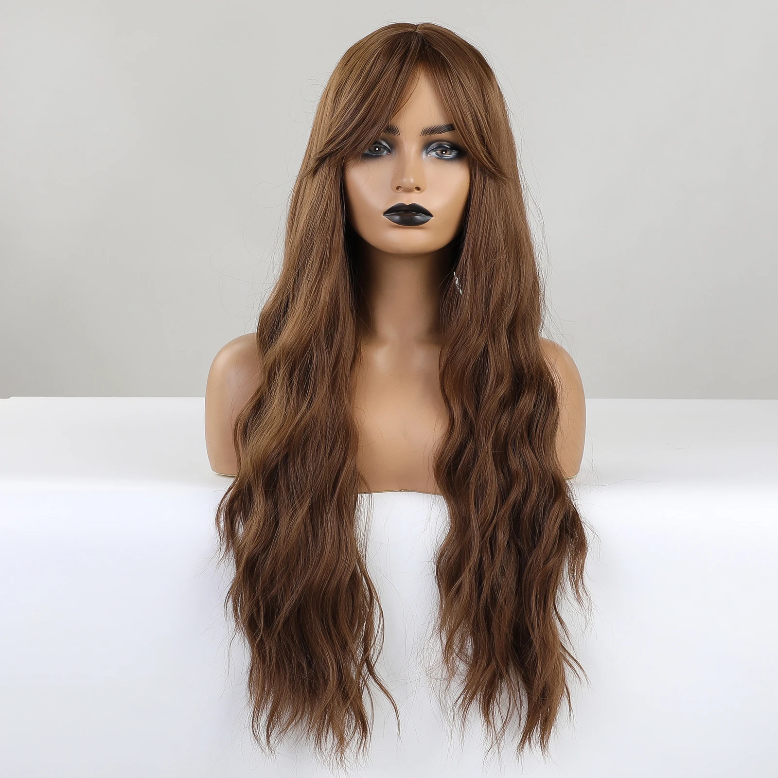 Длинные коричневые волнистые синтетические парики с челкой, вьющиеся натуральные волосы, парик для чернокожих женщин, термостойкие парики для косплея, вечеринки