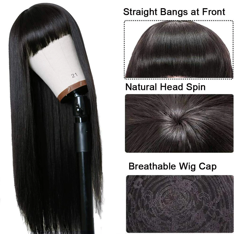 Бразильский прямой парик с челкой, Боб, парик из человеческих волос для женщин, Remy, без клея, полностью машинная работа, натуральный черный парик с челкой