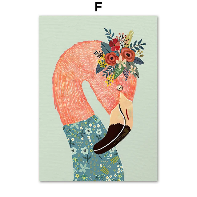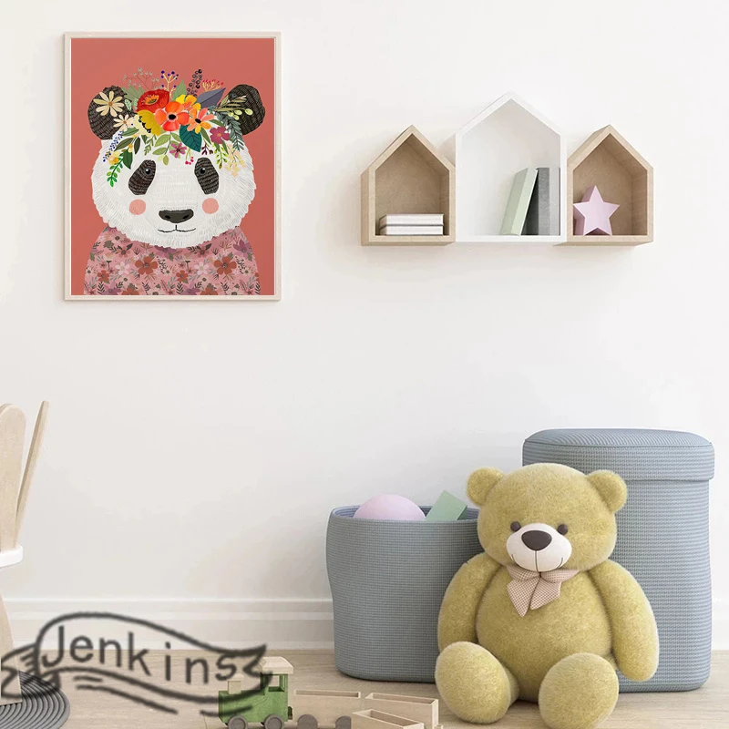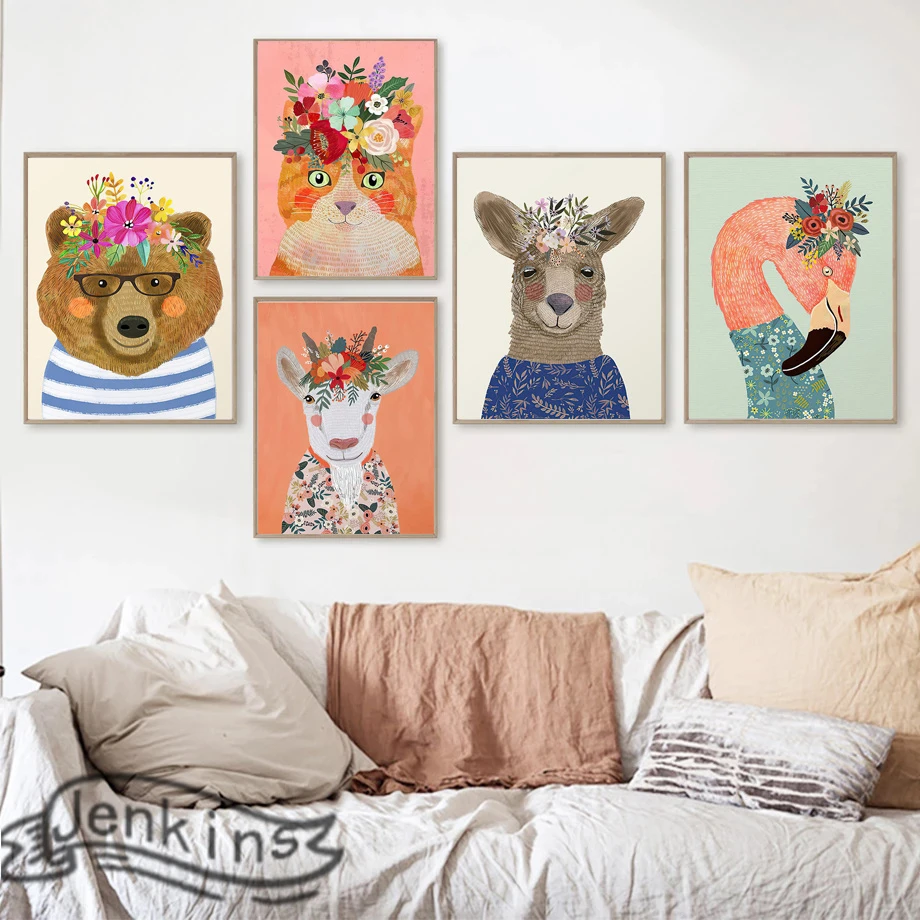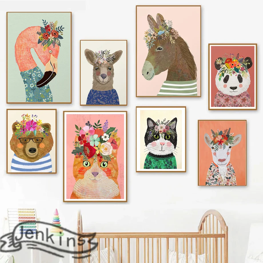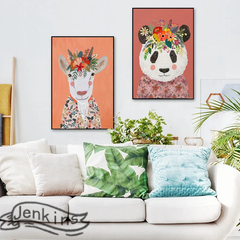 Цветы, милые животные, альпака, панда, овечка, лошадь, цветной плакат для рисования на холсте, Настенная картина, детская комната, декор для гостиной