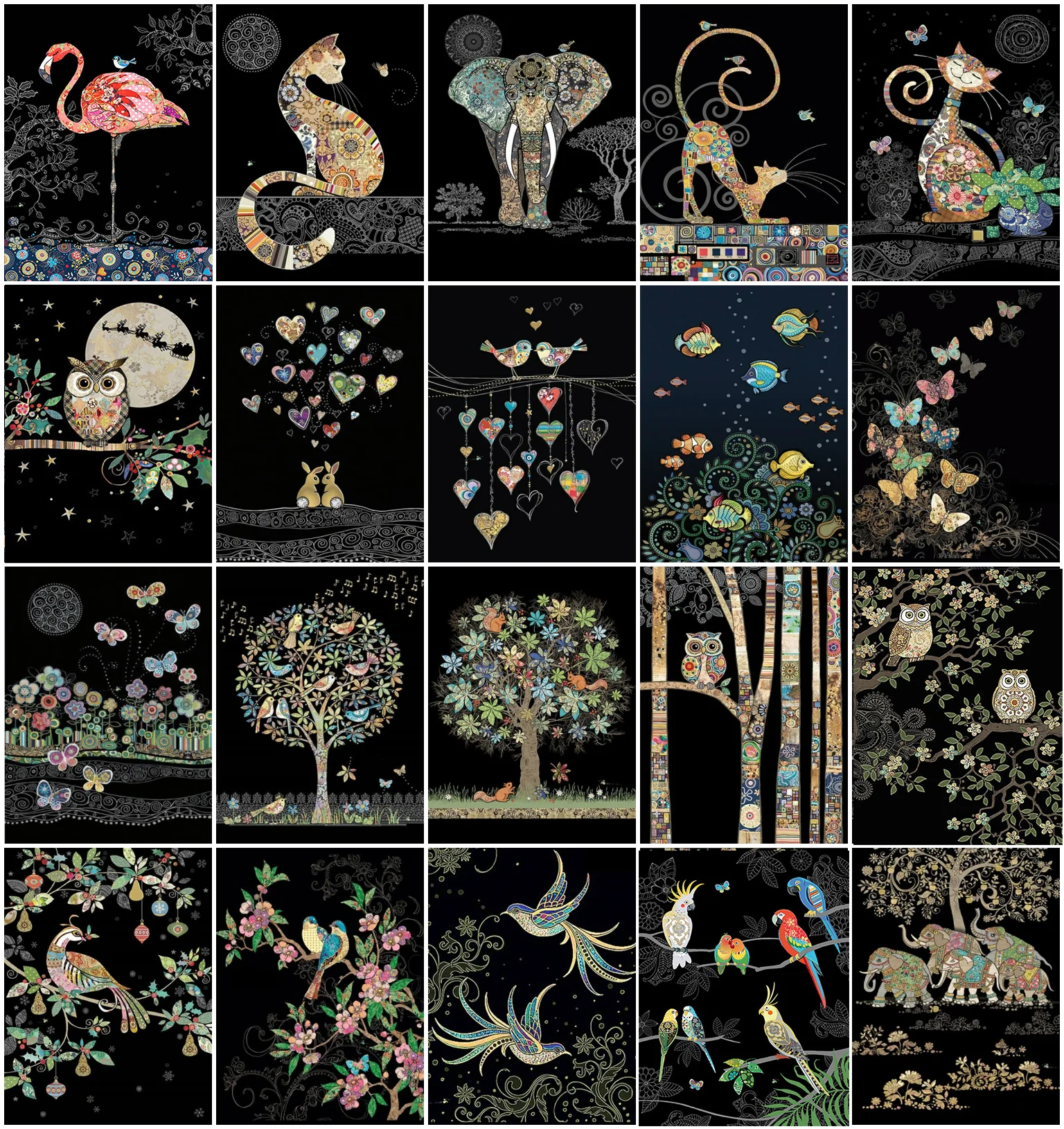 Алмазная мозаика сделай сам, картина с мультяшными животными, кошками, птицами, совой и деревьями, украшение для дома