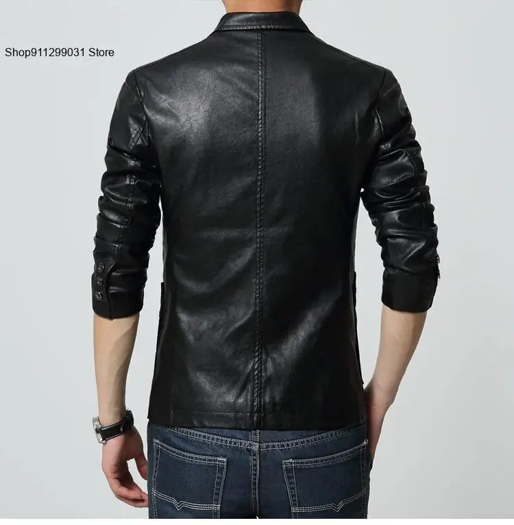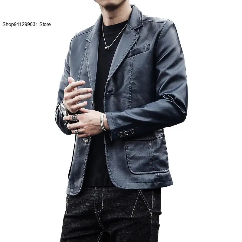 Пиджак мужской из ПУ кожи, с длинным рукавом и воротником