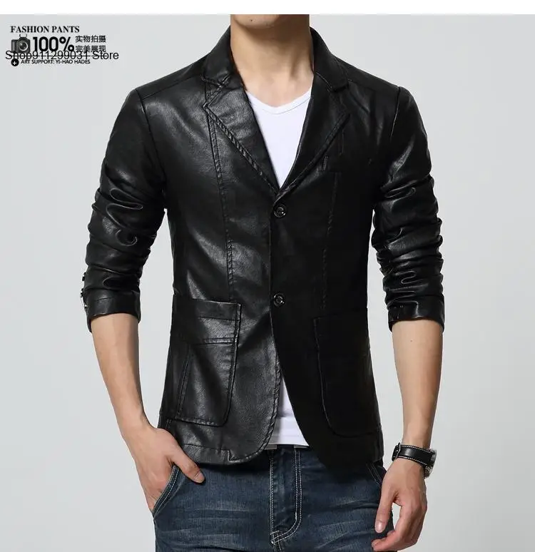 Мужской блейзер из искусственной кожи, с двойной пряжкой, для весны...