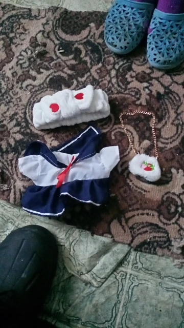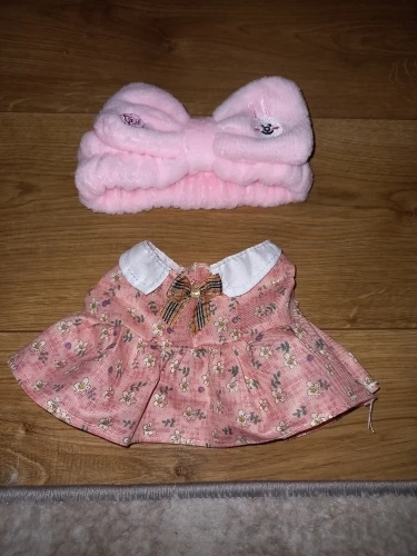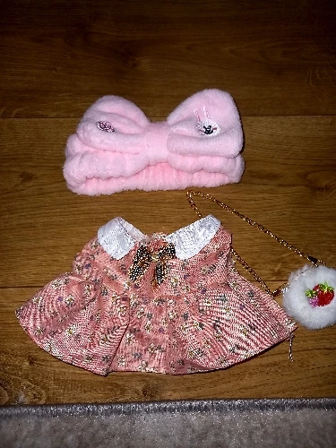 покупала платье с сумкой и повязкой. Материал платья не очень, торчать нитки. Даже чуть чуть порвана юбка платья. повязка и сумка нормальная, повязка подходит на человека и на утку, впринцепи нормально но из-за платья 3звезды