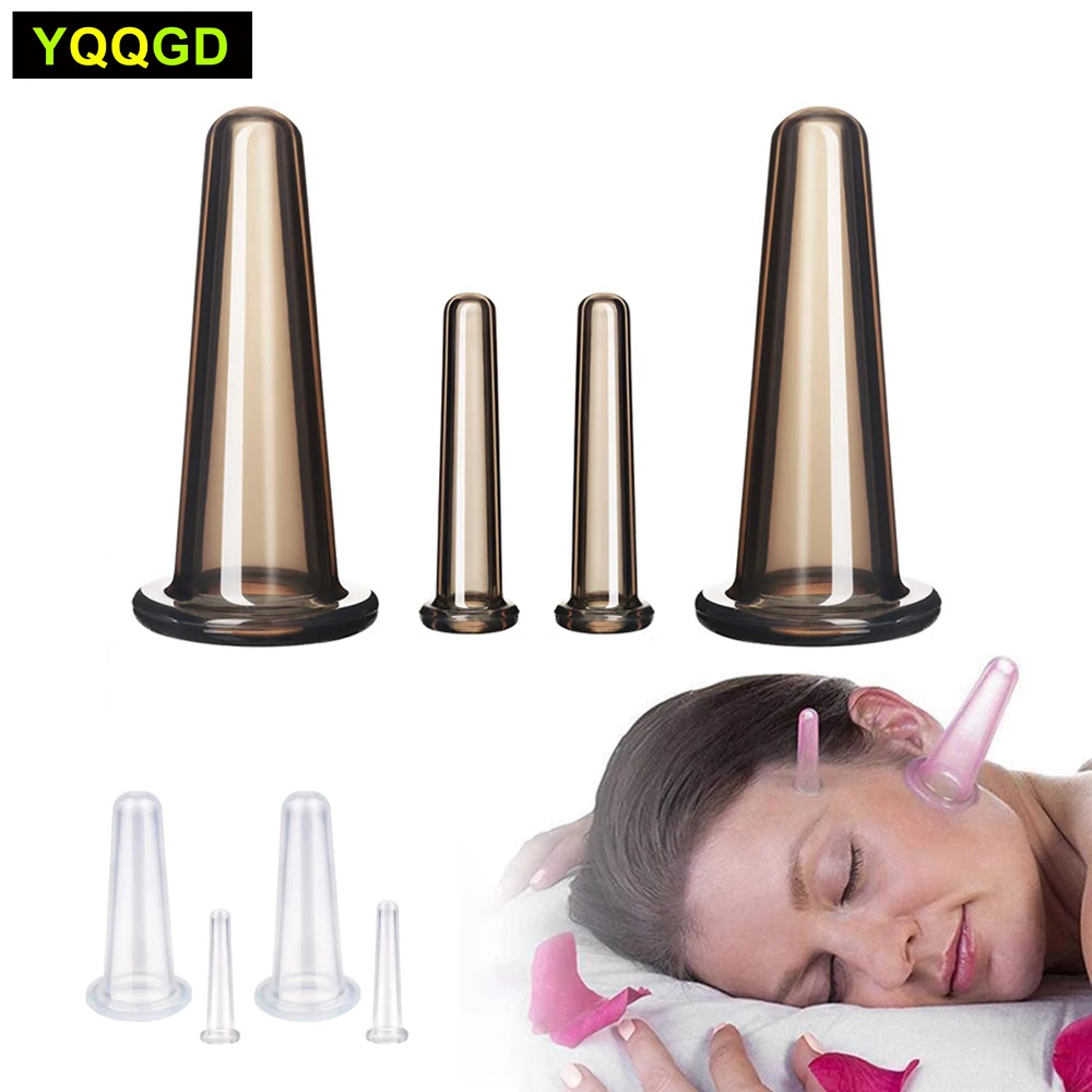 4 шт., баночки из натурального силикона для массажа тела, шеи, глаз