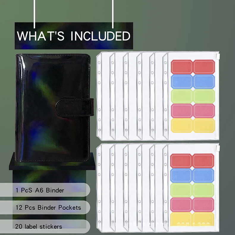 1 красочная оболочка + 12 прозрачных сумок на молнии + 2 шт. 10 цветных этикеток + OPP пакетов