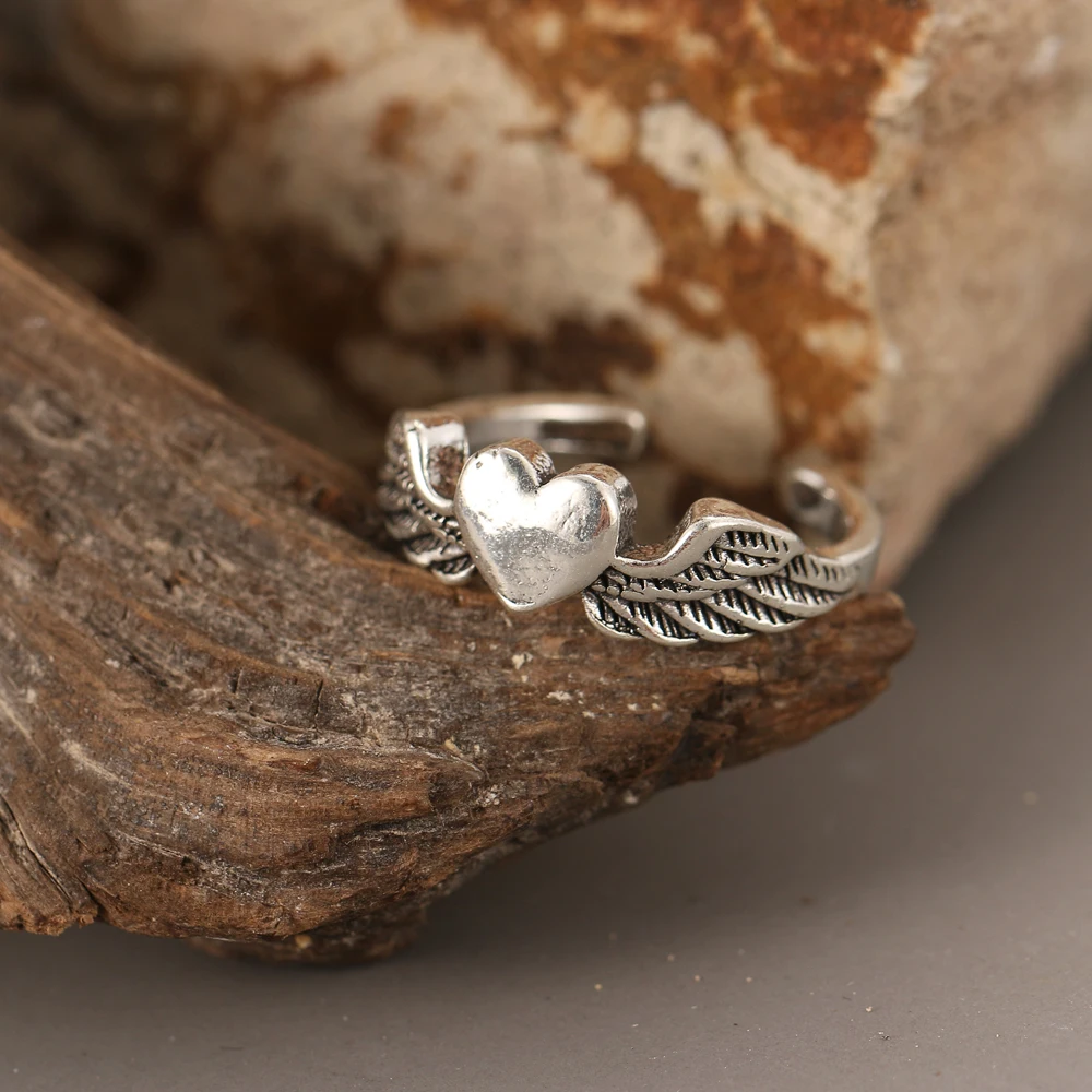 Винтажное посеребренное кольцо с крыльями ангела для женщин, готиче...