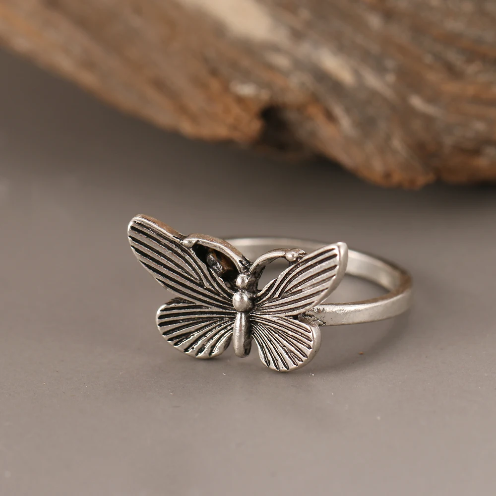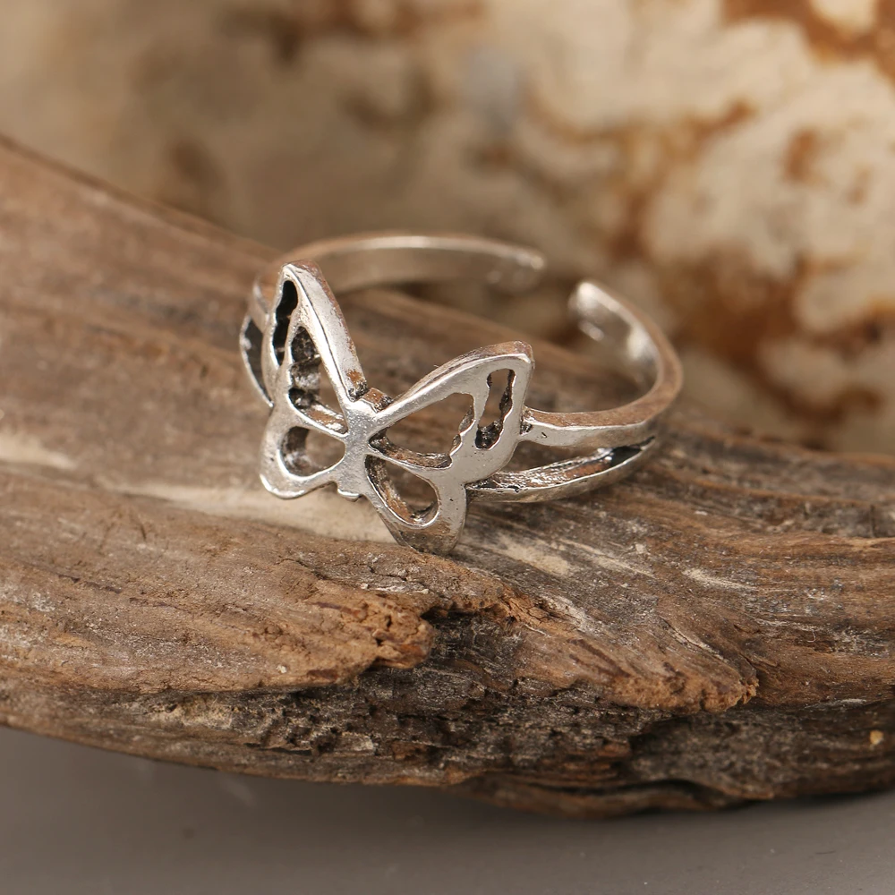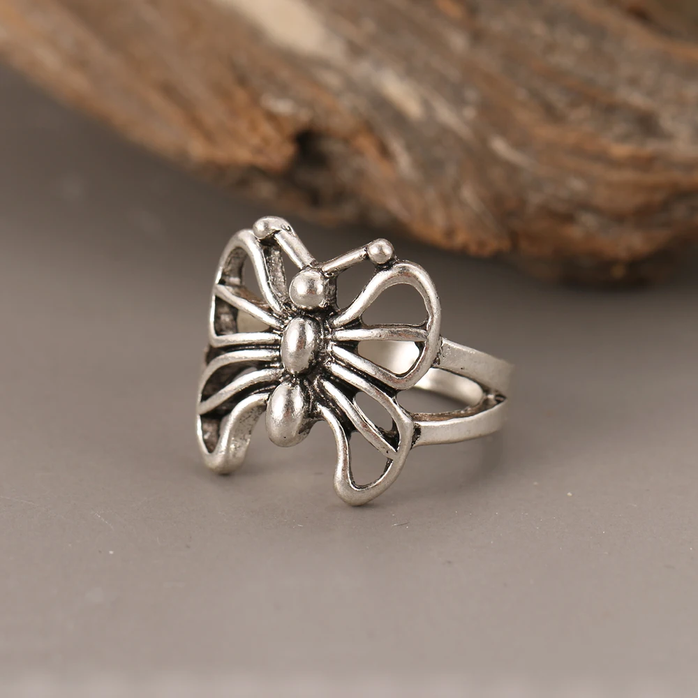 Винтажное готическое кольцо с изображением бабочки и цветком, много...