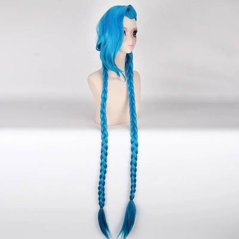 120 см46,8 дюйма, искусственный парик LOL, голубые косы Jinx, парик свободного покроя с синими косичками, синтетические волосы Jinx + шапочка для парика