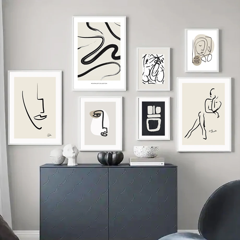 Настенная Картина на холсте черная белая линия лица Тело абстрактные скандинавские постеры и принты настенные картины для украшения гостиной