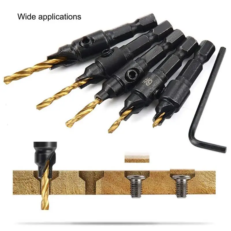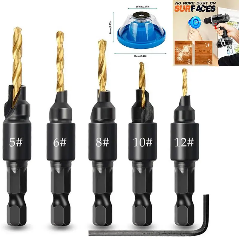 Набор сверл для зенковки, комплект из 6 насадок для сверления направляющих отверстий для винтов, ручной инструмент, пылезащитная крышка для электродрели