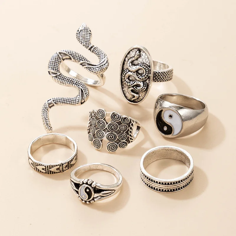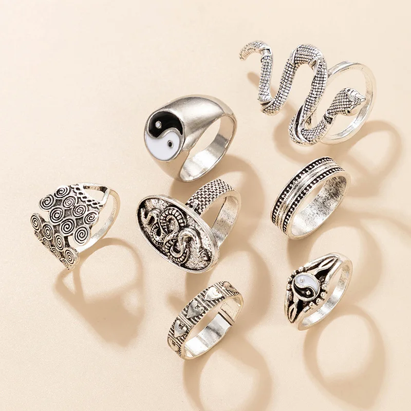 Женское Винтажное кольцо Инь Янь, с изображением змеиного сердца