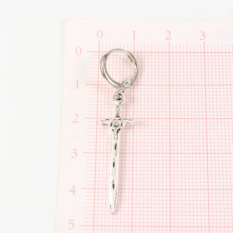 Винтажные серьги-кольца в виде меча серебряного цвета, женская бижутерия для вечеринки, массивный кулон, креативный дизайн, винтажные Подвесные серьги