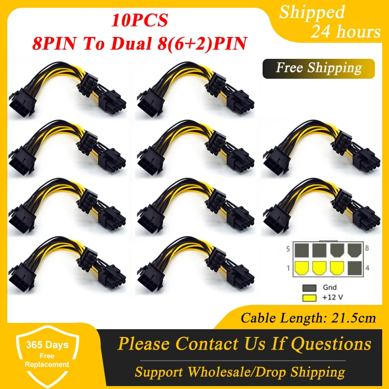 8-контактный разъем dual 8(6 + 2) идеально решает проблему недостаточного источника питания видеокарты.100% новый товар высокого качества.Легкий и портативный.Прочный и практичный.Открытый тип соединения.