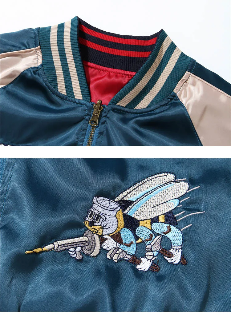 Куртка Йокосука весна-осень тонкая бейсбольная куртка свободные пальто двухсторонняя Роскошная куртка с вышивкой гладкая сувенирная Sukajan