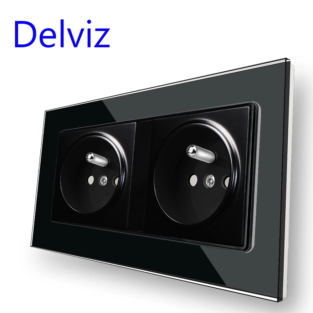 Настенная розетка Delviz 16 А, прямоугольная розетка переменного тока 110-250 В, панель из закаленного стекла, французская стандартная двойная розетка