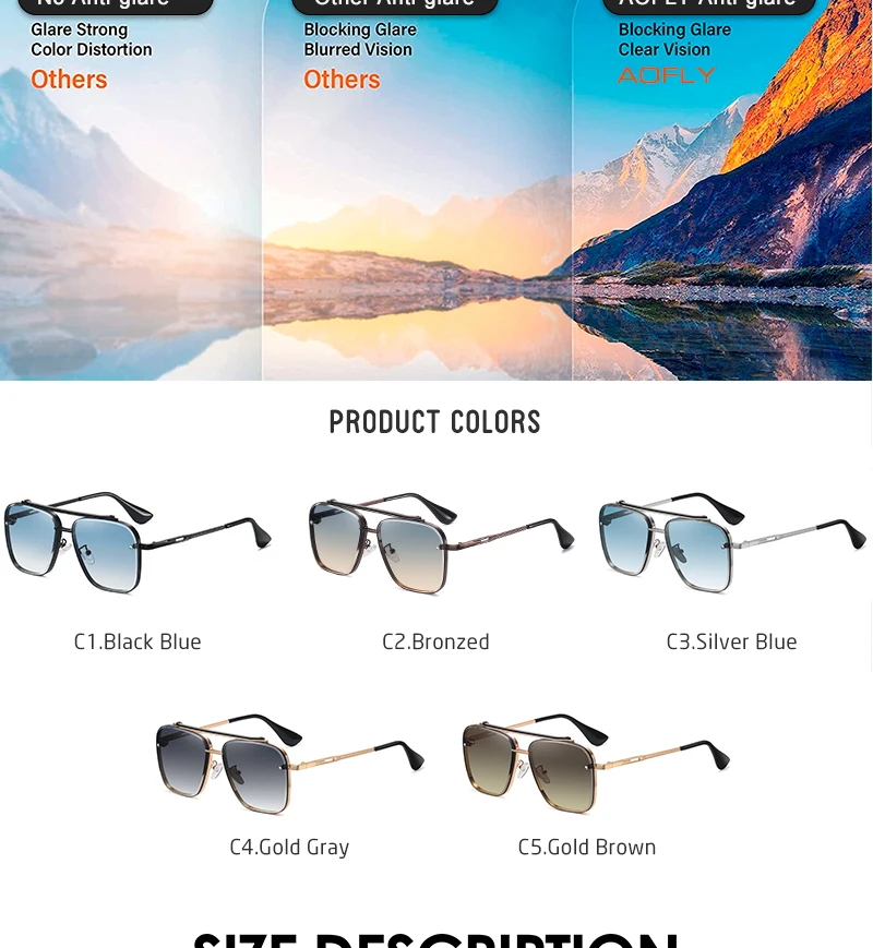 Солнцезащитные очки AOFLY мужские, квадратные поляризационные очки ...