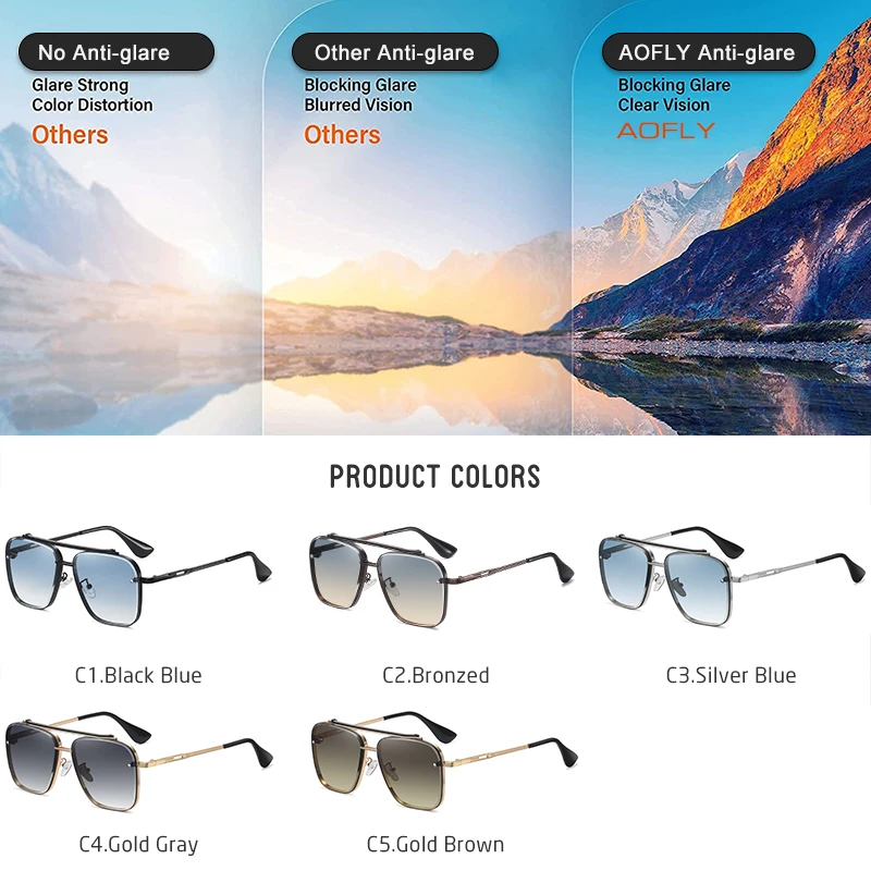 Мужские солнцезащитные очки AOFLY, квадратные винтажные зеркальные ...