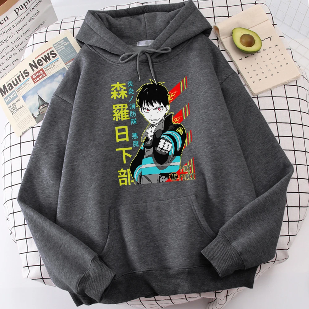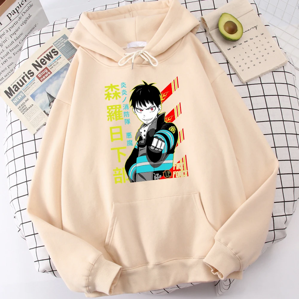 Флисовые Осенние Топы Shinra Kusakabe Fire Force мужская толстовка с мультяшным принтом Толстая Удобная мужская Свободная Толстовка с капюшоном
