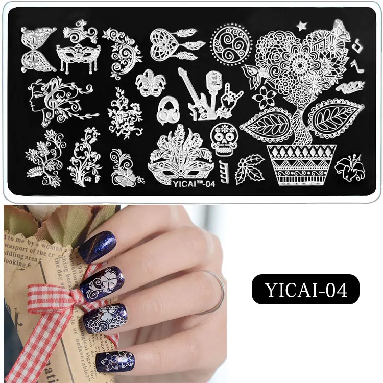 Выгодная Цена: 3D шаблоны для ногтей штамповки, шаблоны трансферных штампов, 40 дизайнерских трафаретов, 6x12 см шаблон печати Pl