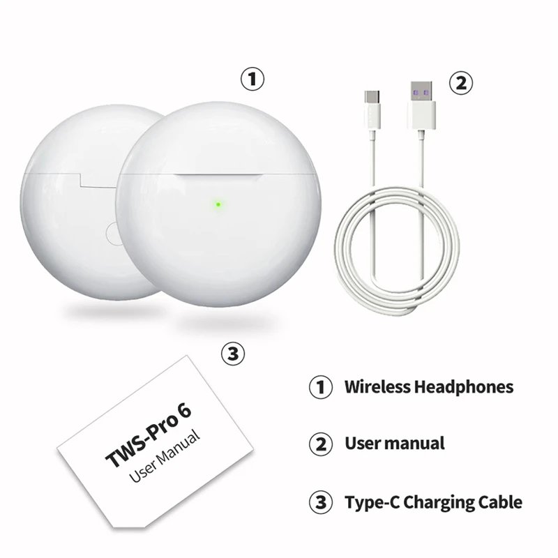 TWS Pro 6 Bluetooth-наушники; Стереонаушники; Беспроводная гарнитур...