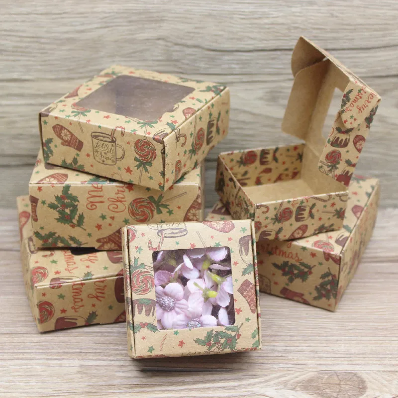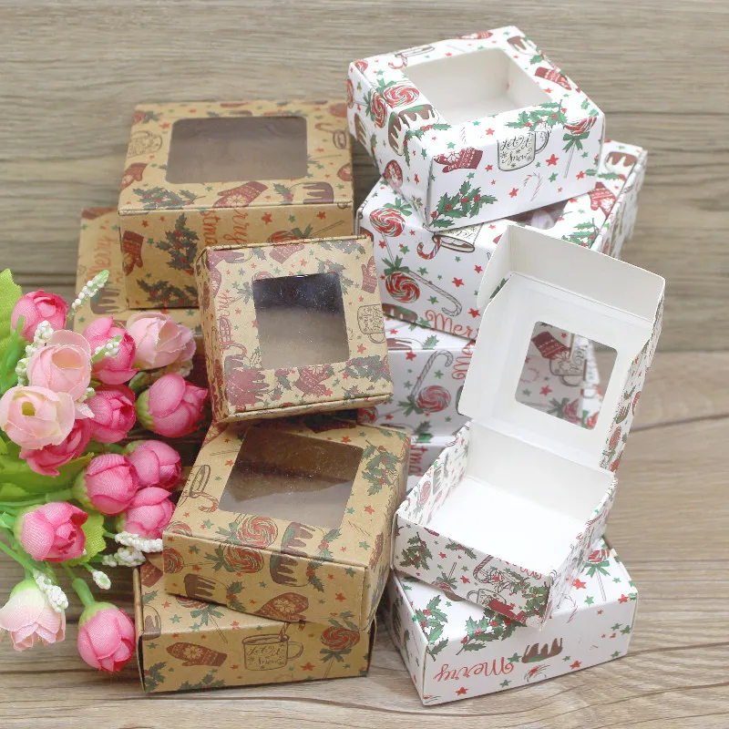 Оптовая продажа, 50 шт., различные подарки, посылка, белая крафт-черная оконная коробка, бумажная мраморная коробка с окном, Рождественская упаковка, посылка