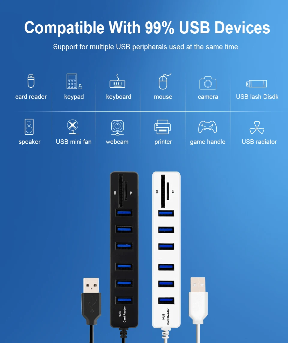 Usb-хаб 3,0 Multi USB Splitter 2,0 3,0 Micro USB 3 HUB 36 Poorten TF SD Kaartlezer hab voor PC Компьютерные аксессуары